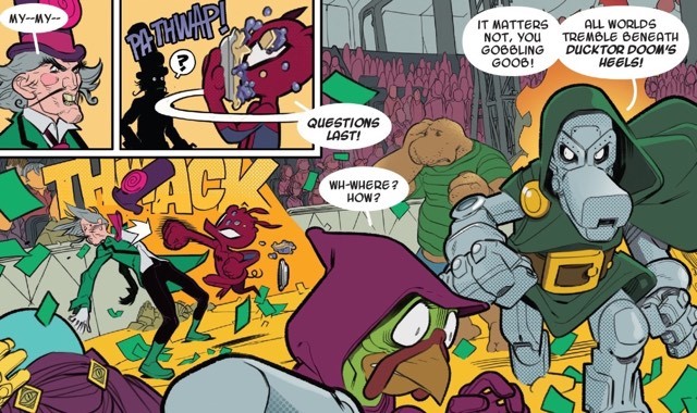 The aforementioned animal alternates are all over the pages of this comic, including Spider-Guin, J. Jonah Jackal, Duck-tor Doom and more.