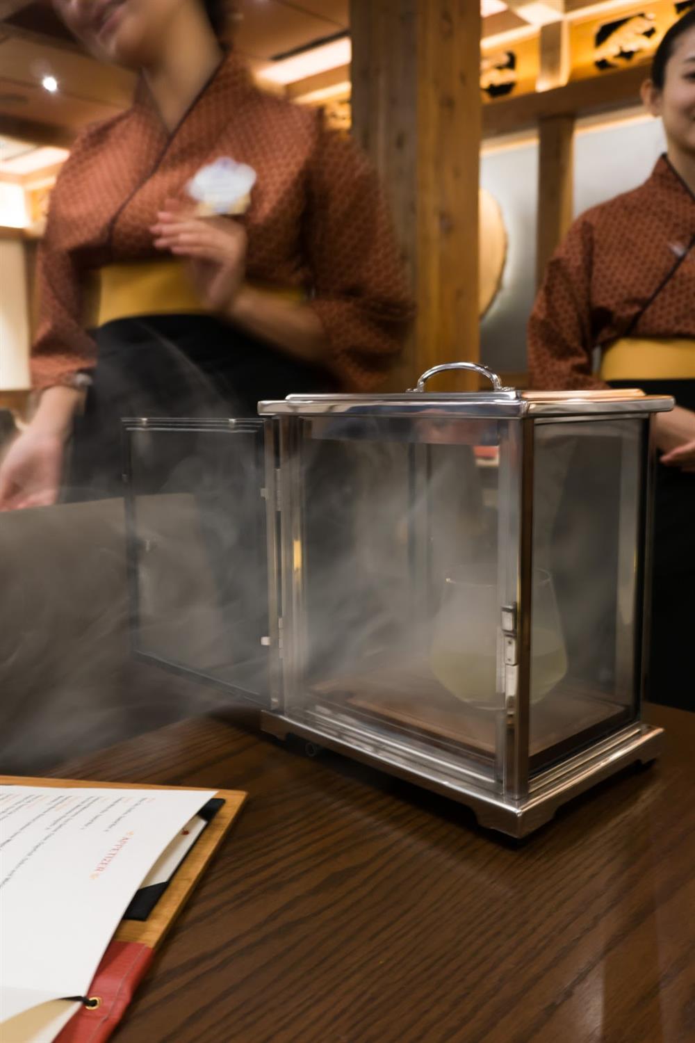 Now for the good stuff: the food and drinks. We started off with a cocktail and a mocktail. The Sakurajima is a Japanese take on a whiskey sour and it is made with smoked cherrywood. The smoked cherrywood is what sold me on trying this beverage, but the presentation was far more than I expected. The drink is brought out in a container filled with cherrywood smoke, which smelled amazing when they opened it up at the table. The first sip was loaded with the smokey flavor and it was delicious.