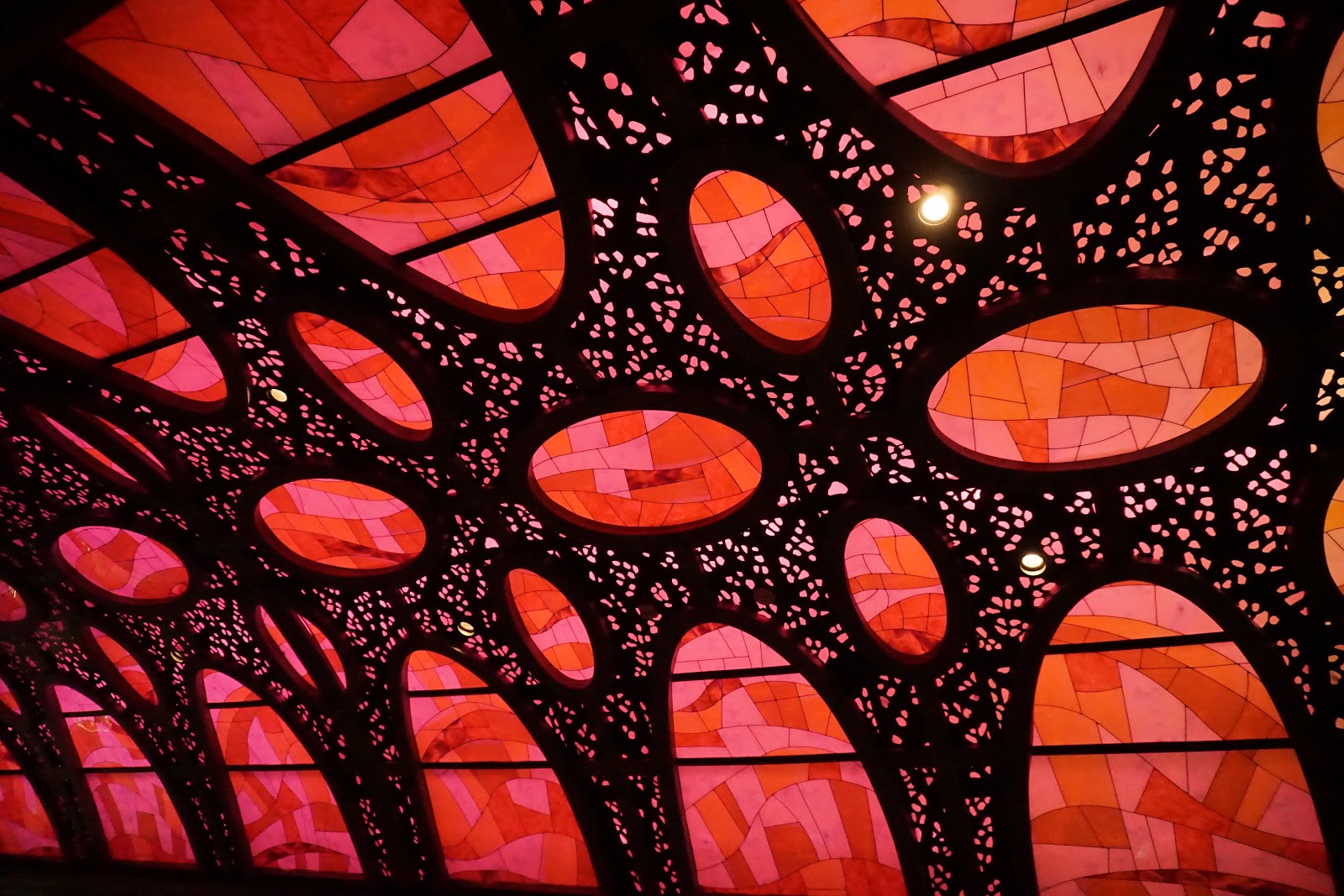 The dining area consists of one large open room with a colorful light fixture spanning the majority of the ceiling. While this colorful lighting wasn’t great for pictures (I apologize in advance for the photos), it did make for a nice ambiance.