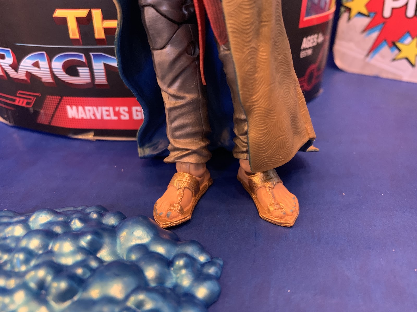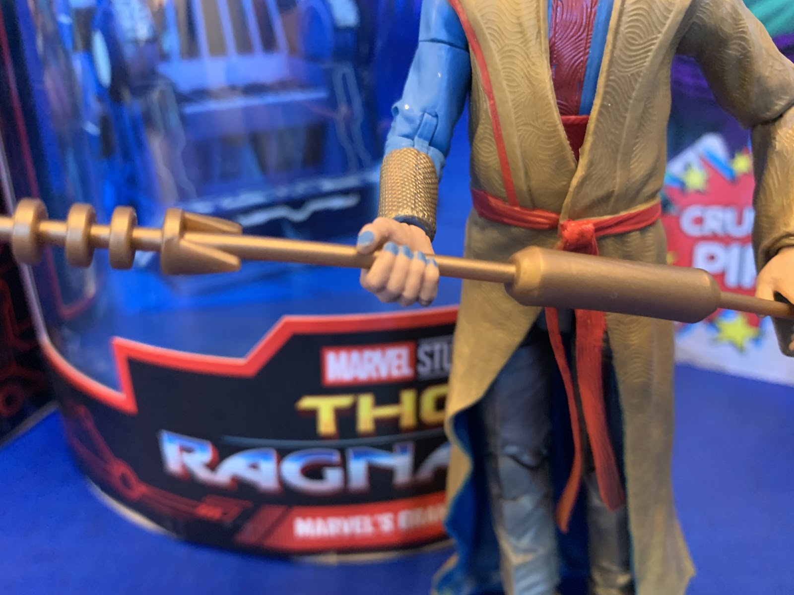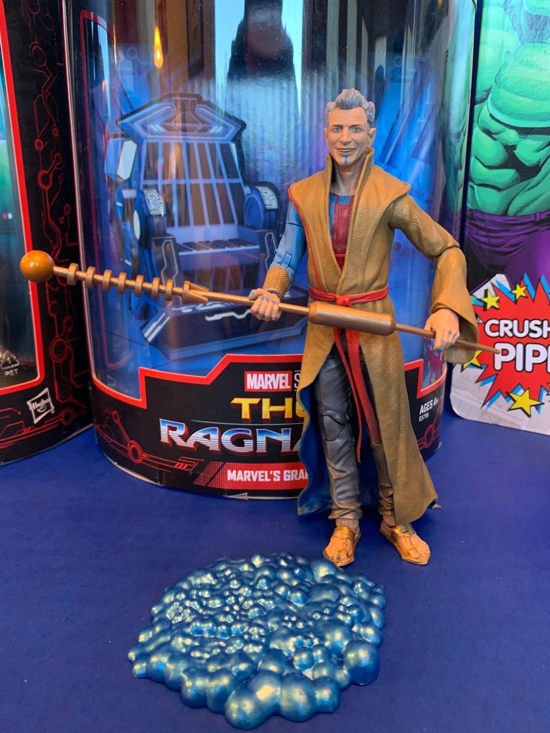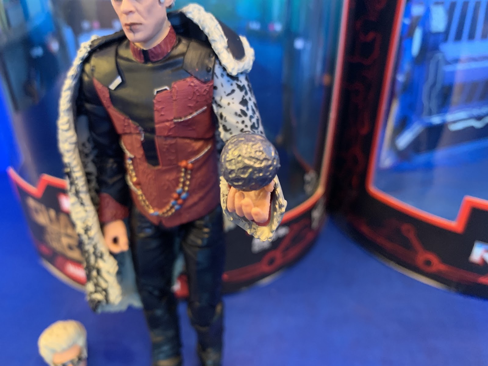 The Grandmaster is bundled with his staff, as well as a plastic pile of vibrant blue bubbly goo, which is what happens when he touches the staff to minions he grows tired of. The likeness to actor Jeff Goldblum is uncanny and the detail on his painted fingernails and toenails is out of this world. His robe is a bendable rubber material with detailed texture.