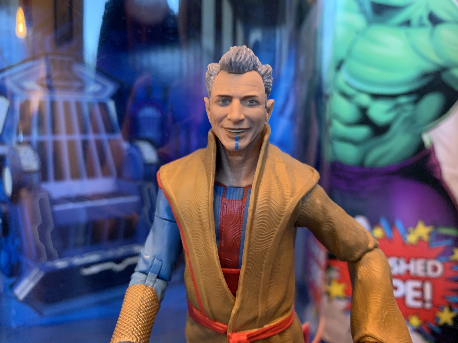 The Collector comes with his orb, which housed the Power Stone in Guardians of the Galaxy. He also features a swappable head that includes his magnifying glasses. It’s remarkable how much he looks like Benicio del Toro. The face sculpt technology has improved so much since the Marvel Legends line began.