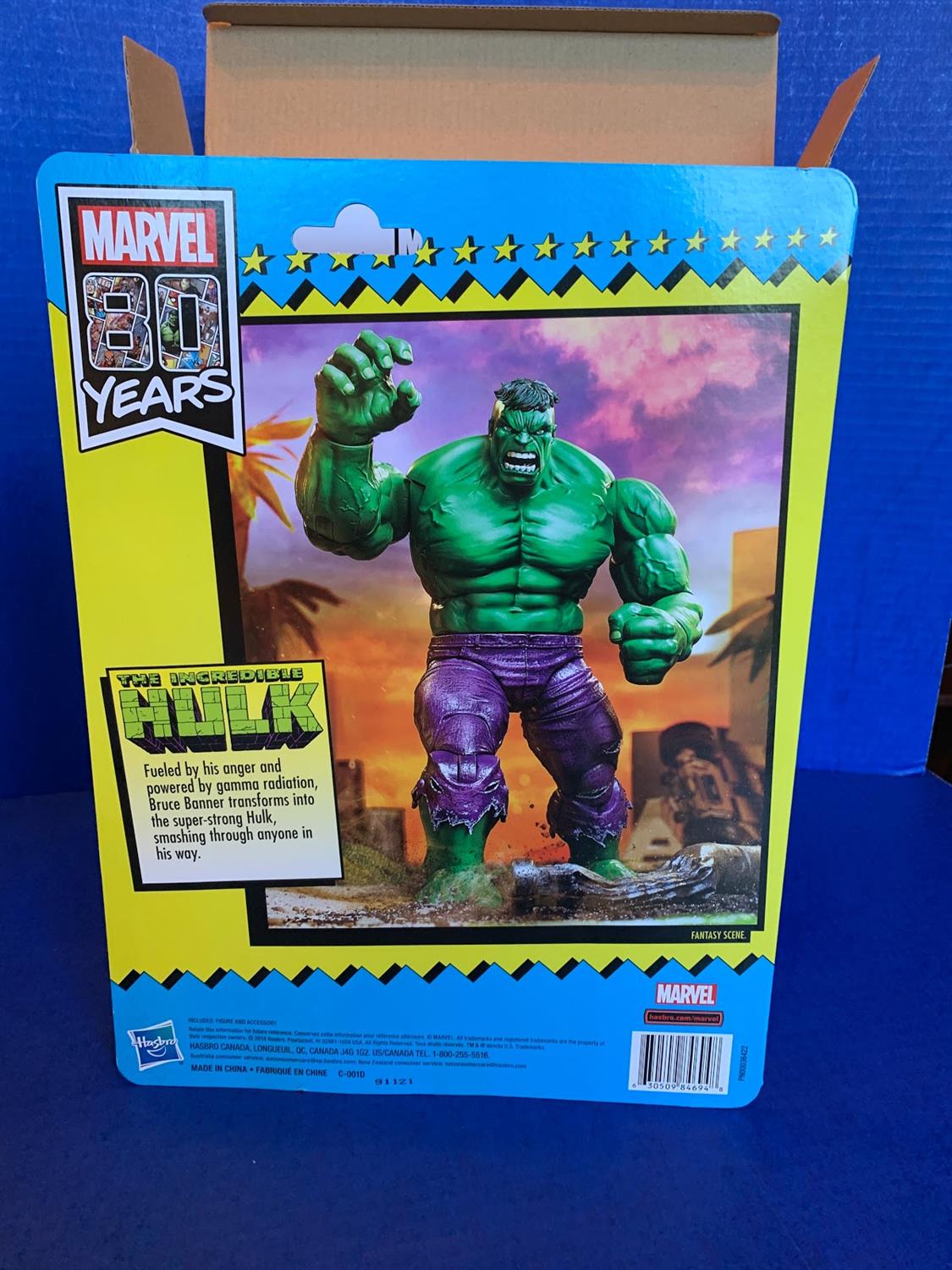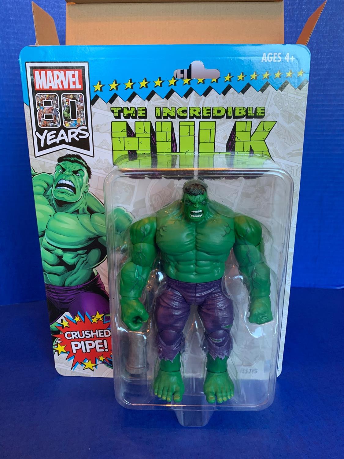 In celebration of Marvel’s 80th anniversary, Marvel Legends has a line of comic-based figures that celebrate the rich legacy of the characters throughout the decades. Another San Diego Comic Con exclusive figure in this line brings the Incredible Hulk to the series. The figure comes on a classic cardback that evokes the esthetics of the 1990’s ToyBiz packaging. This is protected inside of a white cardboard box when purchased to ensure that the edges don’t get dented or dinged while you enjoy the convention. This figure retails for $34.99.