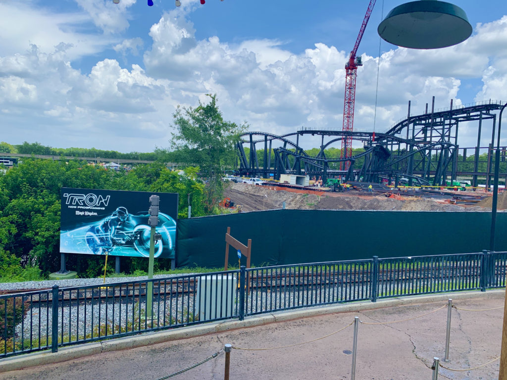 Today, the land has been cleared and most of the indoor track has been assembled for this thrilling coaster that takes you to the Game Grid of Tron and lets you experience what is it like to be a Program facing off against other light cycles (through a little Disney magic).