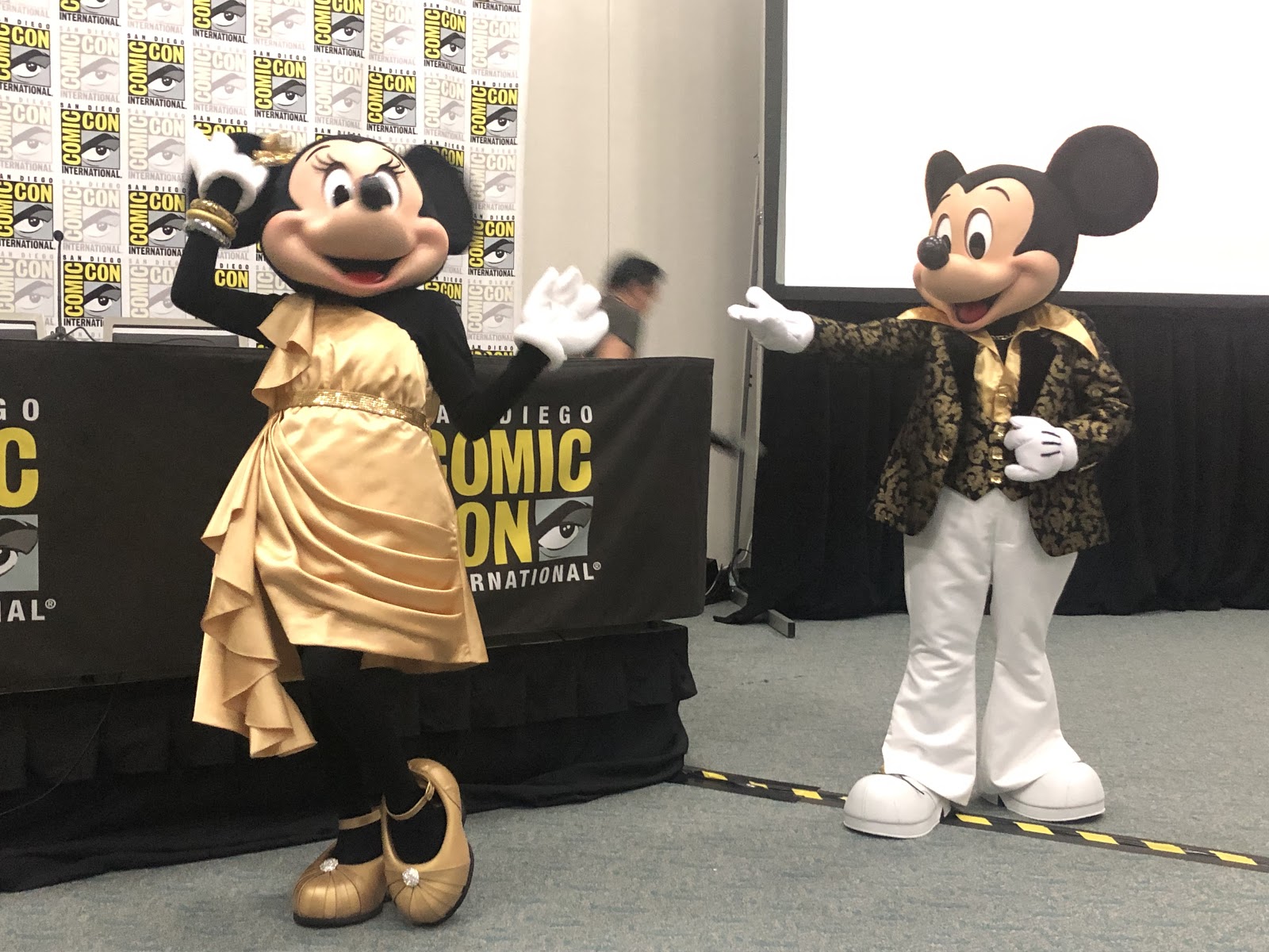 We then learned more about Mickey Mouse Disco and the new Mickey Mouse and Minnie Mouse outfits it inspired for two recent D23 disco events in Los Angeles and during Comic-Con in San Diego. Then, the audience was treated to a special surprise as Mickey and Minnie themselves came out to boogie down!