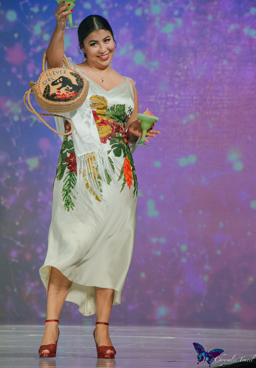 Adria is a self-taught designer, and a five-year veteran of the Her Universe Fashion Show. Armed with cocktails, Adria Renee was ready to enjoy the resort island of Isla Nublar in Jurassic Park.