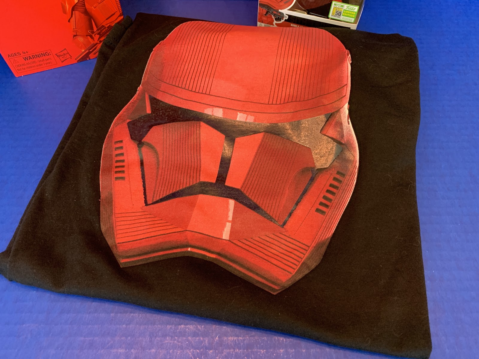 I wore this Fifth Sun Crew Cut T-Shirt in the video at the top of this article. It’s soft, loose-fitting, and comfortable. The printed Sith Trooper face has a soft rubbery feel to it, with the red helmet in a matte finish while the black accents are glossy and reflective. It’s a great way to wear your excitement for Star Wars: The Rise of Skywalker in advance of the film’s release.