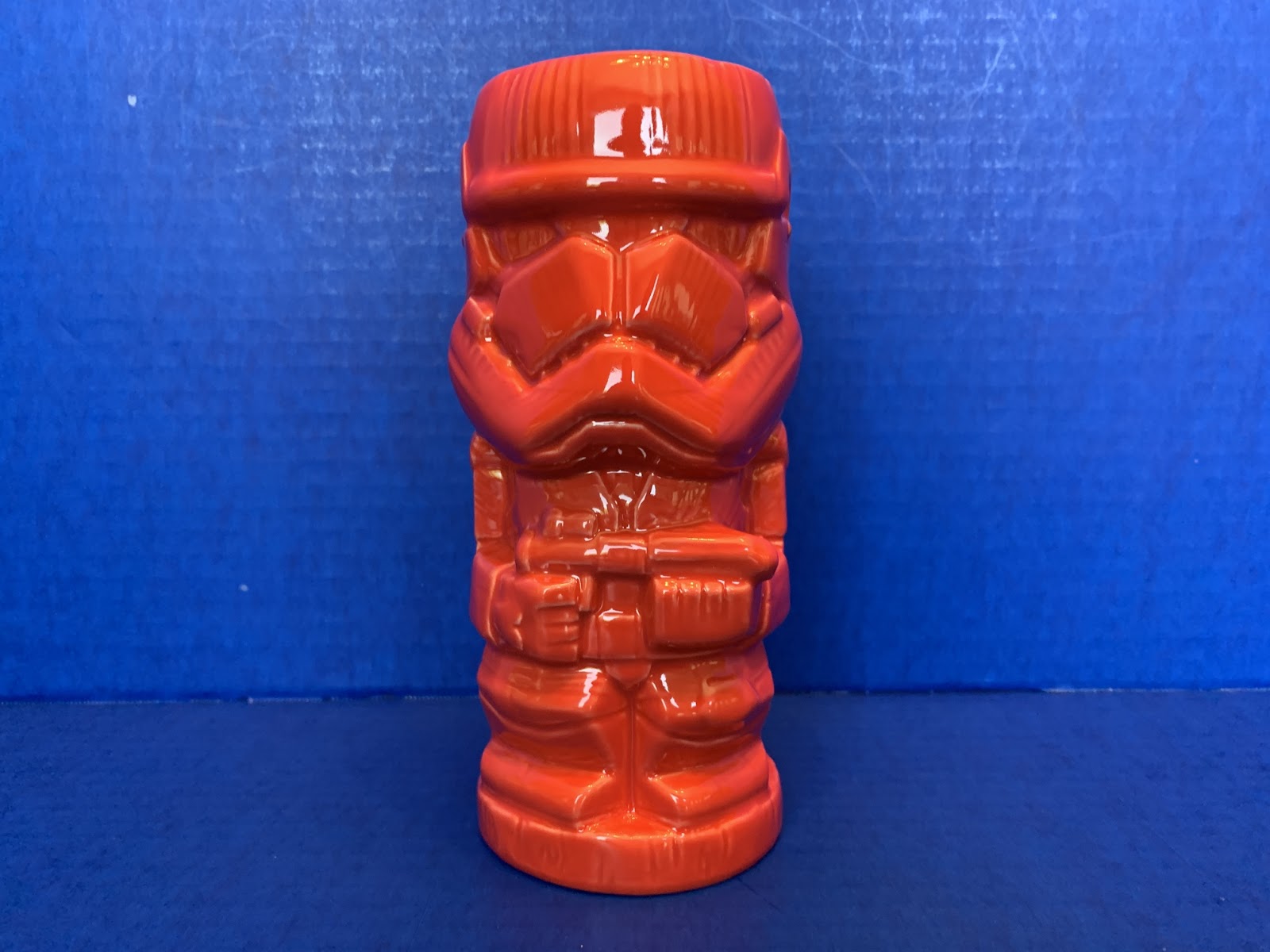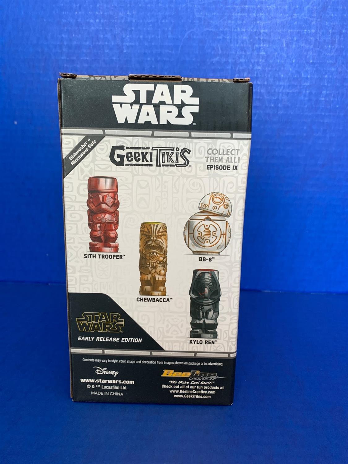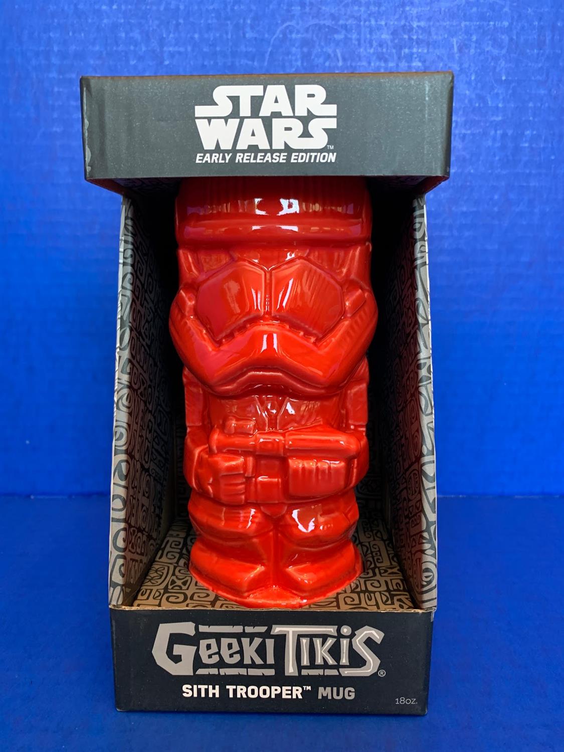 Fans of Star Wars and tiki esthetics can add the latest GeekiTikis mugs to their collection, including the Sith Trooper that debuted at SDCC. The back of the box advertises other new characters in the line, including Chewbacca, BB-8, and Kylo-Ren with his cracked helmet.