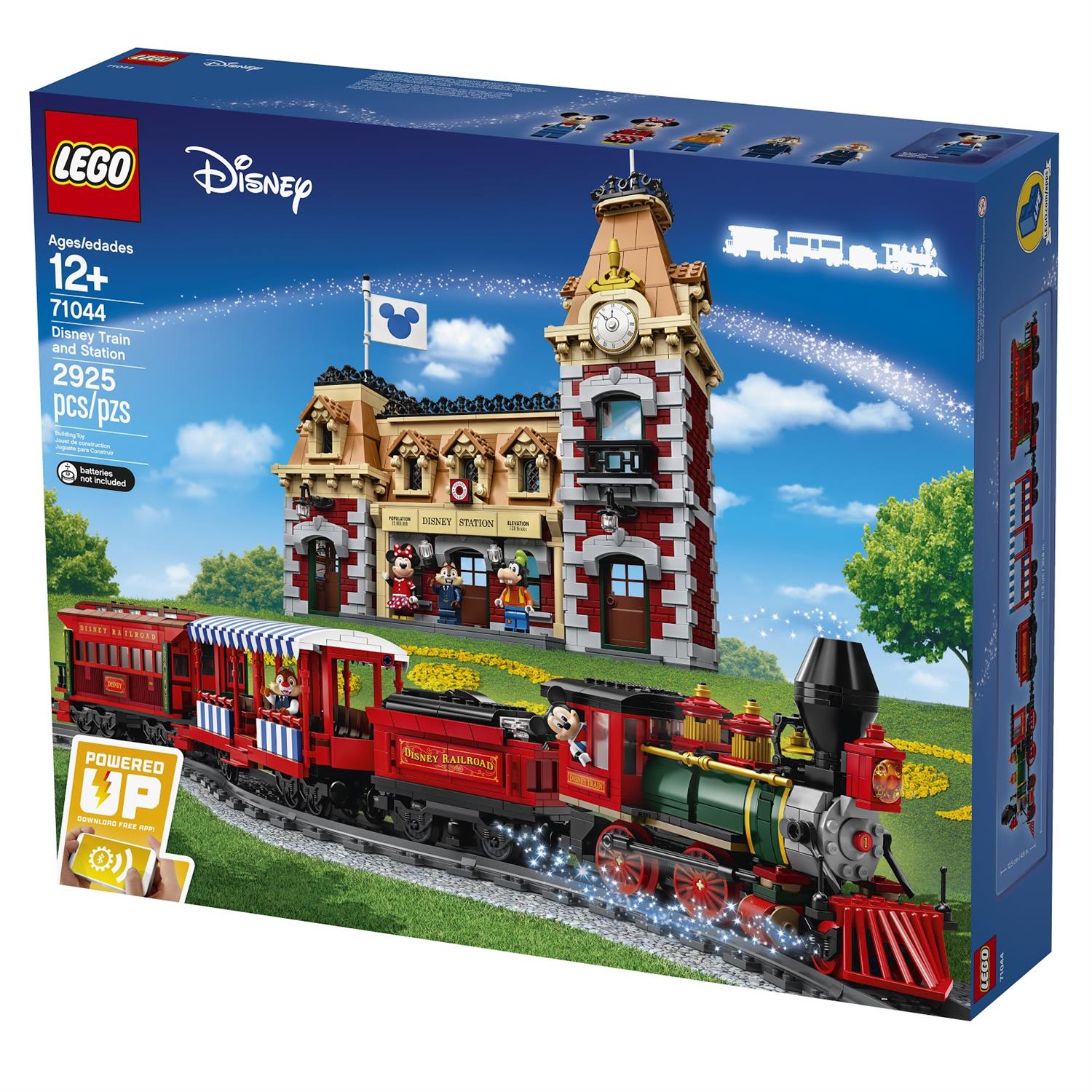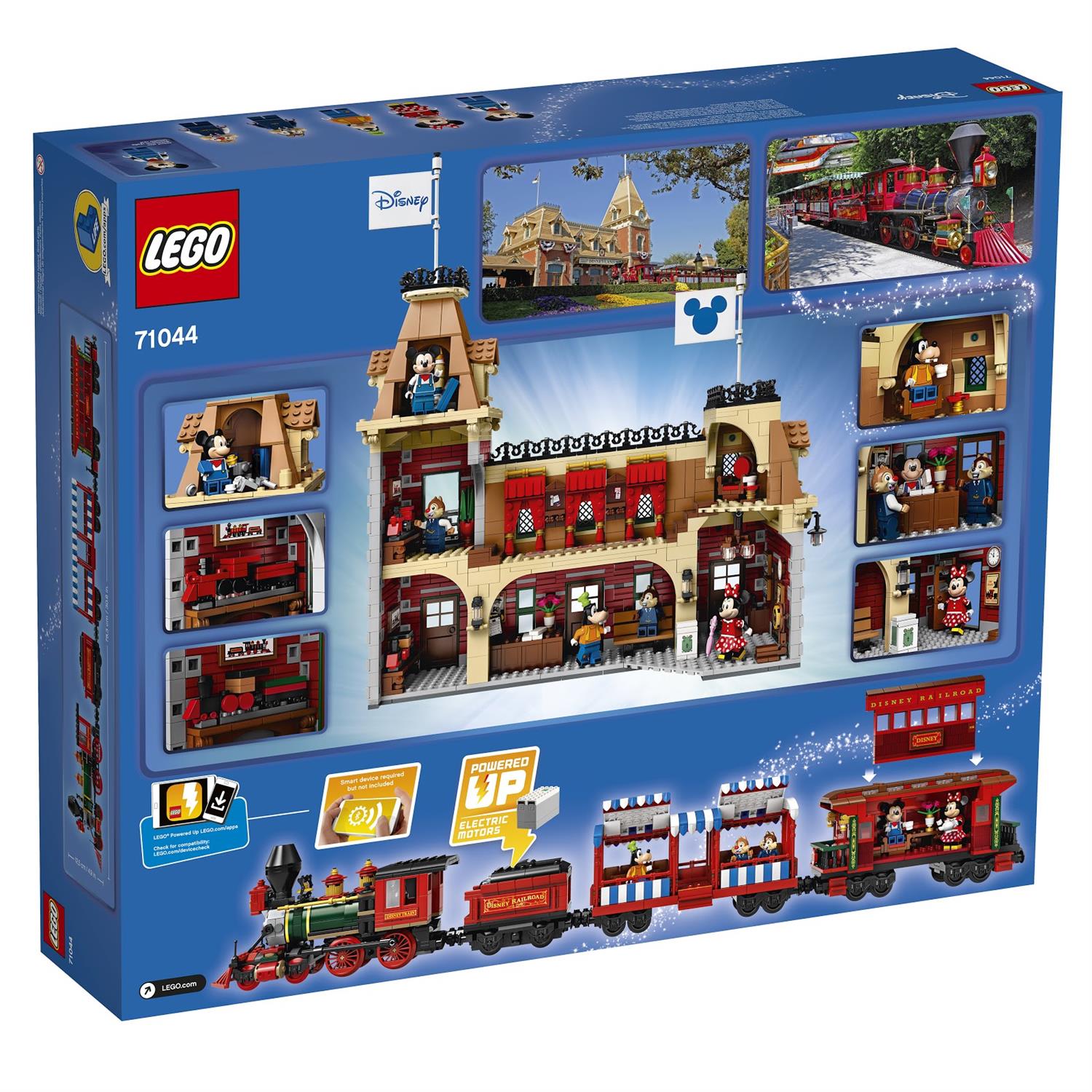 LEGO Disney Train and Station is set #71044 and will retail for $329.99 in the United States. The steam-style railroad train includes tender, passenger car, and a luxurious parlor car (which Disneyland fans know as the Lilly Belle). Builders can control the train with a downloadable app, with forward and backward movement plus realistic sound effects. Remember: batteries are required but not included!