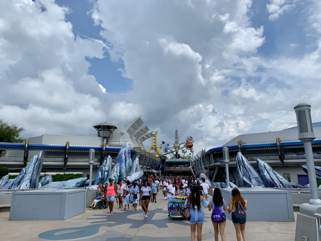 Now for the largest spot of construction, we have to pass into Tomorrowland, where since the last update there has been no change to the sign/archway that used to make the entrance into the land.