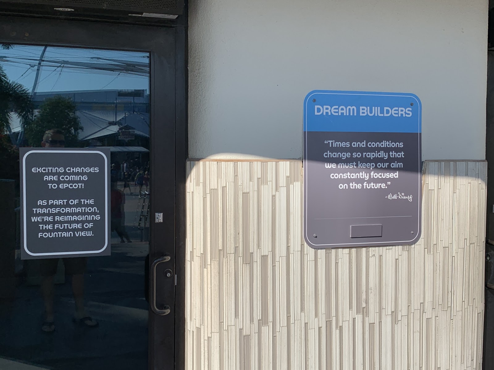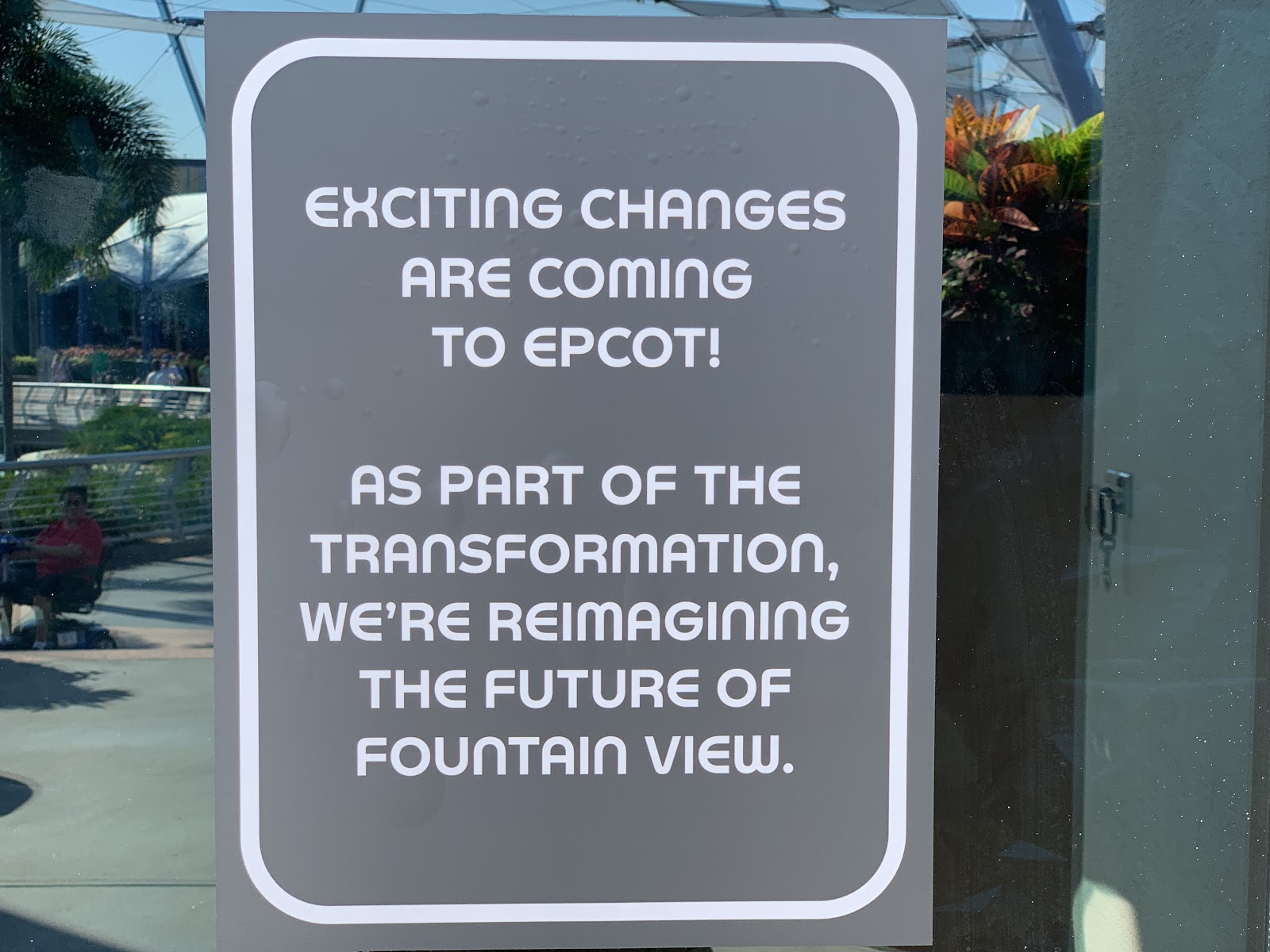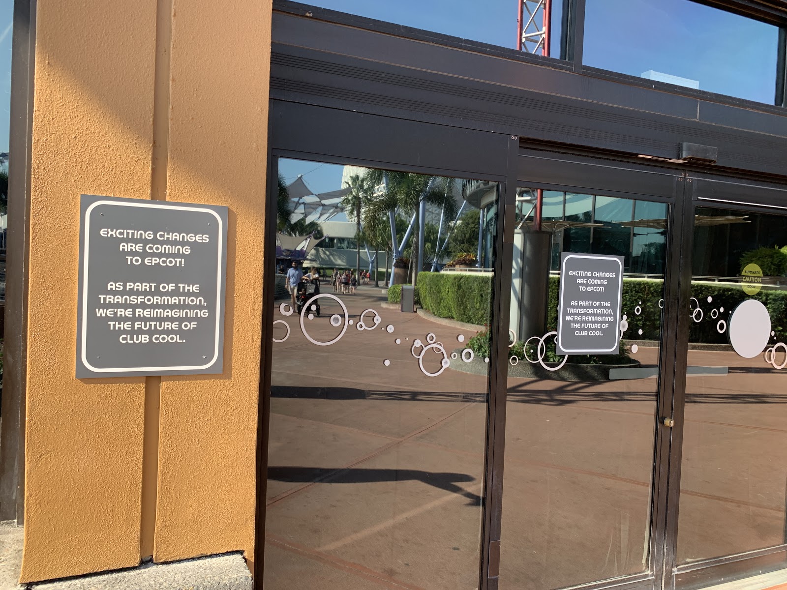 When we returned to Epcot today, walls had been put up blocking access to the former Fountain View Cafe, and Coca Cola Club Cool.
