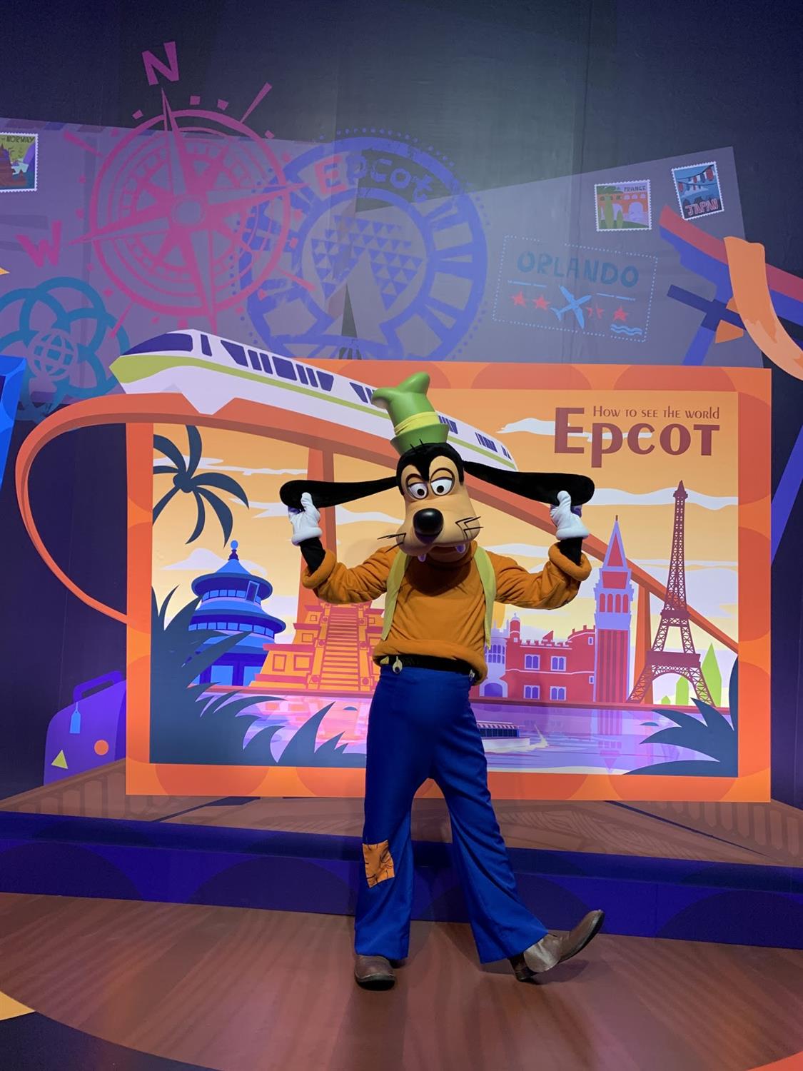 Mickey, Minnie and Goofy are still there but the backdrop for them has changed