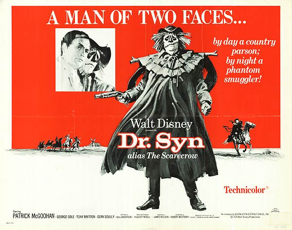Similar to Davy Crockett, Dr. Syn, alias The Scarecrow was a three-part television serial for The Wonderful World of Color that was edited into a feature film. Based on the Russel Thorndike book series, the educated Dr. Syn had some high sea adventures before the events of this film that found him facing off against pirates and even spending time as one himself. This adaptation focuses on his life on land as a horse riding masked crusader fighting against corrupt government similar in tone to the popular Zorro program. The literary character Dr. Syn was a popular fictional pirate in the 1920’s through 1940’s and the Disney Adventures magazine featured this version of the character in one of their Pirates of the Caribbean comics where he worked side-by-side with Captain Jack Sparrow.