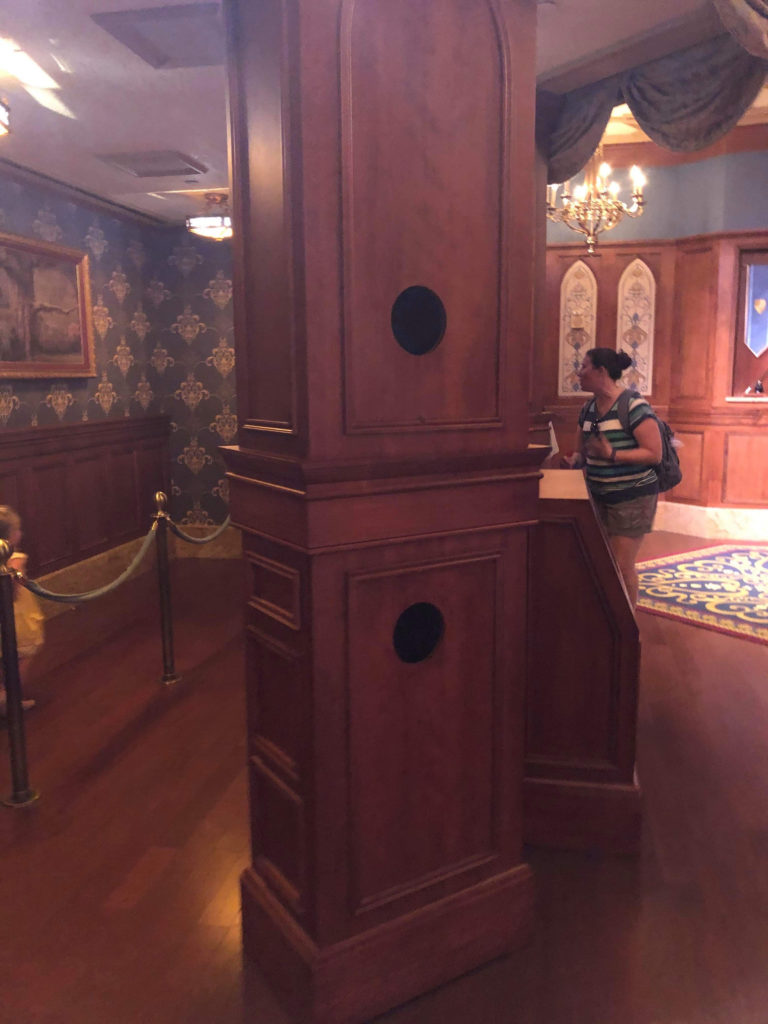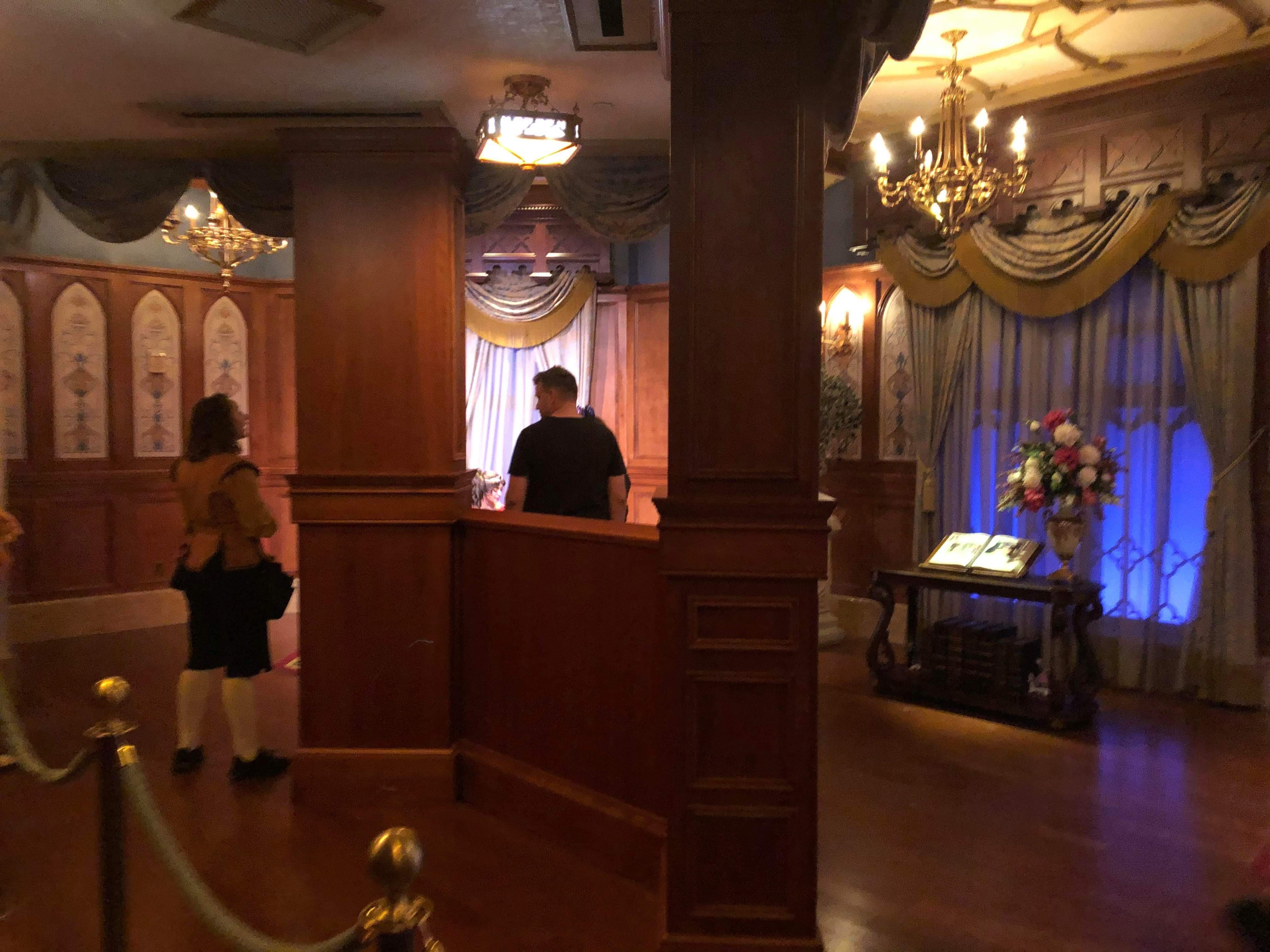 - The former open room with Cinderella and Elena now has columns awaiting the camera installation and what looks very much like a Disney PhotoPass kiosk in-between seen in the other automated locations.