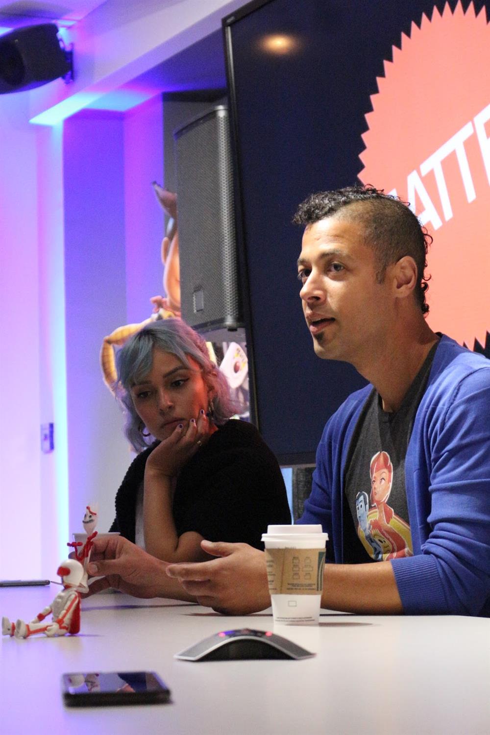 Pixar Animator Claudio De Oliveira, and Pixar Visual Development Artist Ana Ramirez joined us and told us stories about the development of Forky, including Claudio’s over 200 homemade Forkys to get the look just right. Ana Ramirez spoke about how much effort she put into making the digital materials of Bonnie’s backpack look authentic and real. I’m personally a big fan of the Wally B patch on the bag, an homage to one of Pixar’s earliest short films.
