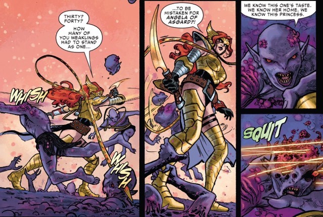 After the team discusses the situation and teleports to a temple in Indonesia, the action begins. Angela and Blade, separated temporarily from the group, confront this new foe for the first time, giving us a look at just how brutal these characters can be.