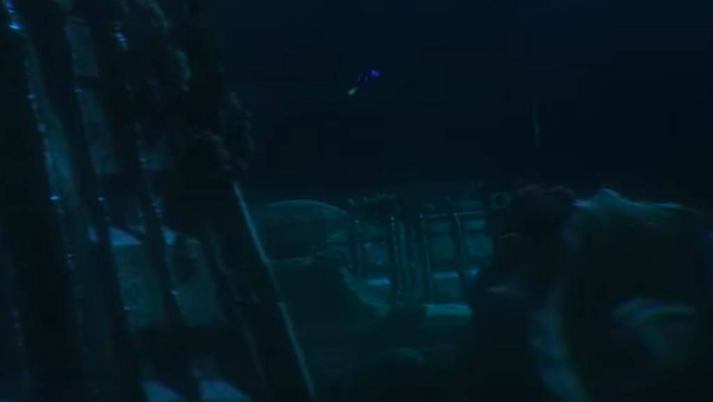 And of course, probably the most well-known Pixar easter egg is the Pizza Planet truck. This one can be found in the first 20 minutes of the film, as Dory is swimming above some junk at the bottom of the ocean. It’s a tough one to spot, but in the image above, you can just make out the windshield and iconic rocket on top.