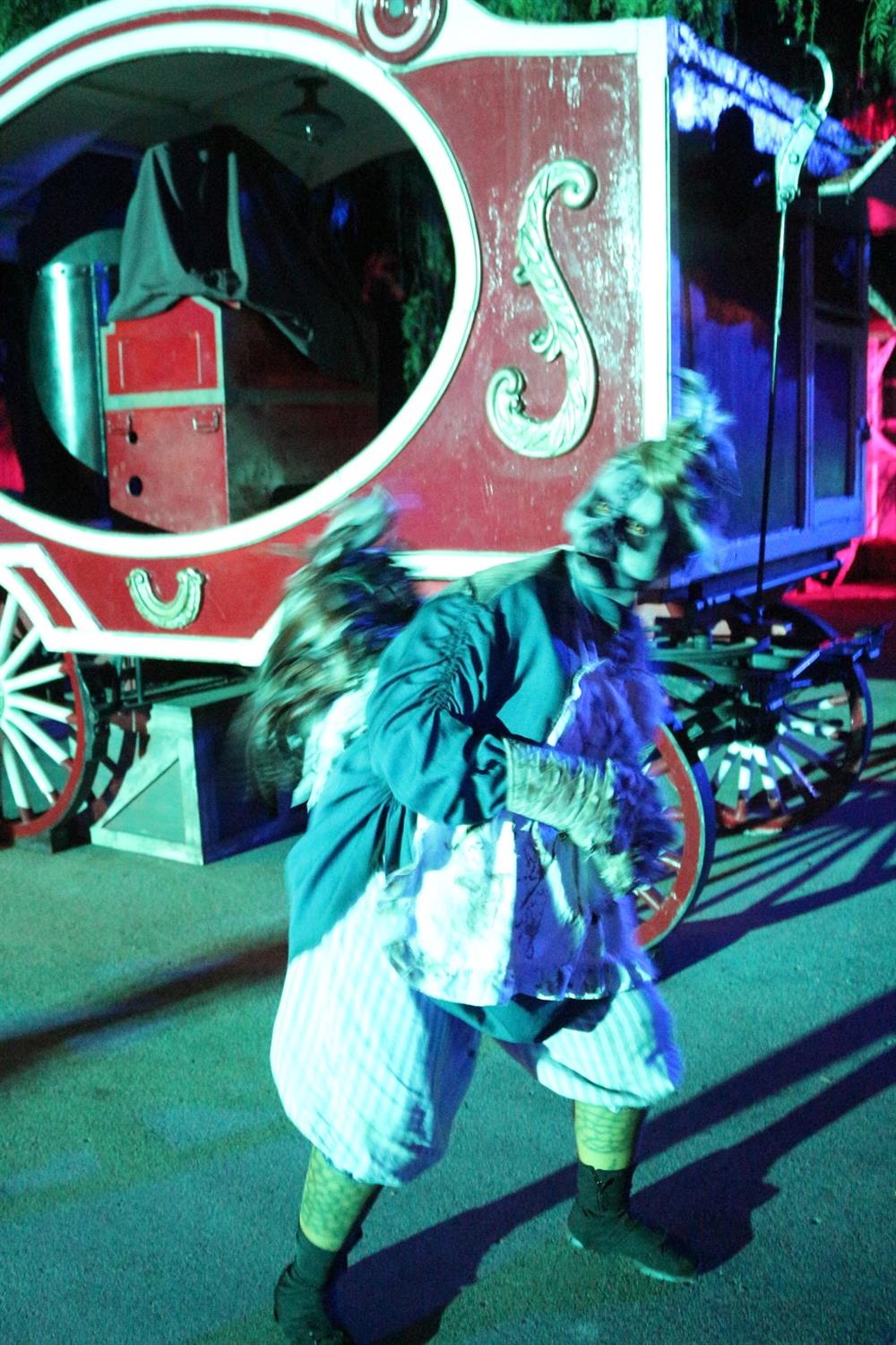 New to the event this year, this was the only maze I had heard anything about before I came to Knott’s Scary Farm. About the evolution of Sarah Marshall from the ghost town of Calico, and her paranormal activity that plagues the town as she is put on trial for her suspected crimes of witchcraft. According to Knott’s, “All will be unveiled when the Green Witch rises up and curses the townsfolk, transforming all who have accused her into a wicked horde of malicious creatures with an eternal quench for the living.” This maze actually ties together the Hanging show, and the Ghost Town Streets Scare Zone and the maze into one coherent story, and actually helped explain the strange chicken-woman hybrid I saw running around the scare zone. The house itself was immaculately done, with beautiful set pieces and aerial performers in some scenes. There was a lot of use of screens in some areas, sometimes blended in as mirrors which worked really well, but other times when they were just there, it didn’t really seem to work. The length of this maze is very good as well, as it is quite lengthy compared to other events, and even other mazes at Knott’s. I also really enjoyed that there is a performer elevated outside of the house, setting the stage for what’s about to occur inside as guests wait in the queue. A great touch.