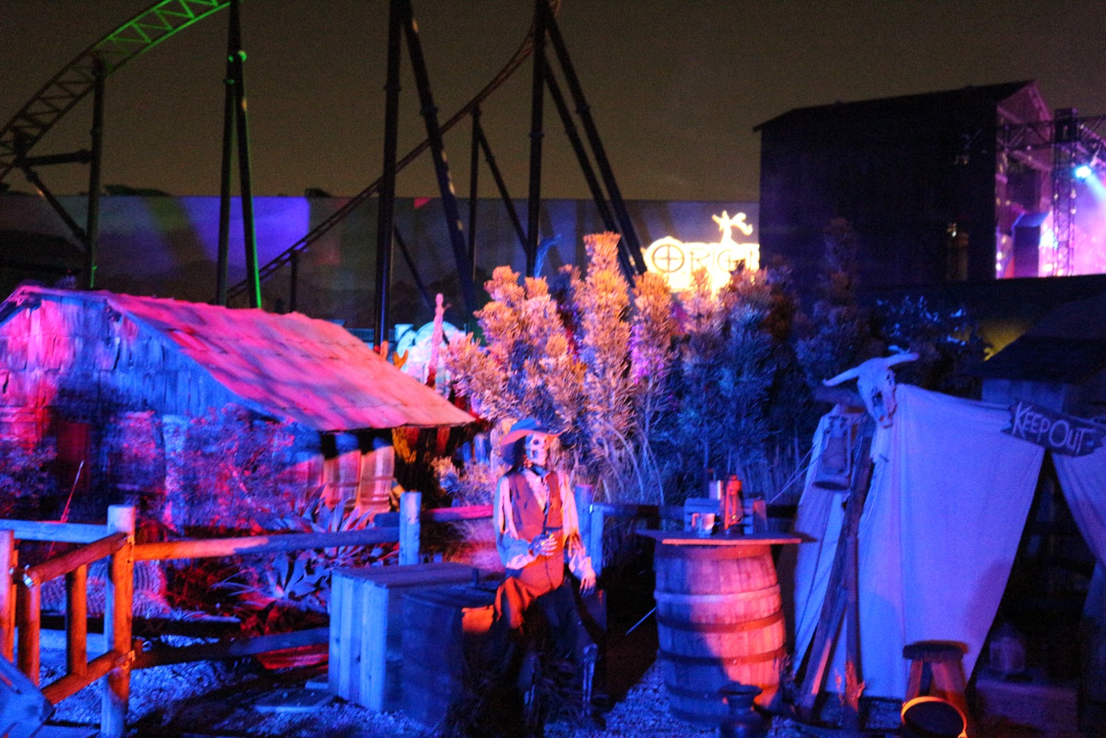 Some were definitely better than others but, overall, the scare zones were ruined for me by a lack of set pieces — save for Forsaken Lake, which had some nice work done. The Hollow was eerie and almost overly-fogged and the scare-actors in the zones threw me because they were allowed to talk and borderline harass the guests. That was something I’ve never seen before and I was stunned when I saw two scare-actors in the Carn-EVIL scare zone essentially corner some teen girls who were cowering in that fear-laughter as the performers were screaming at them with phrases like “Why won’t you love us??” That was a little off-putting. The fog and lighting of the Ghost Town Streets were a highlight as well, but I personally wouldn’t call those “sets” as the ghost town is one of the areas that make Knott’s Berry Farm so special and unique.