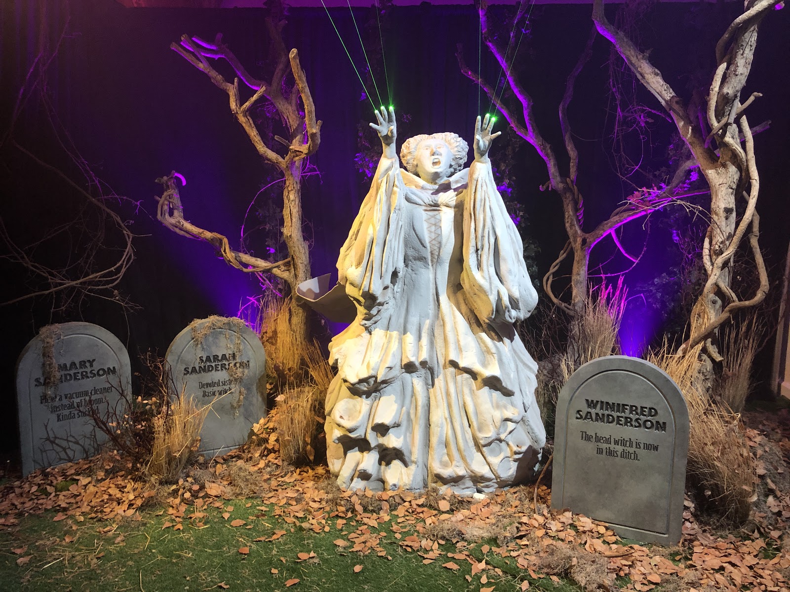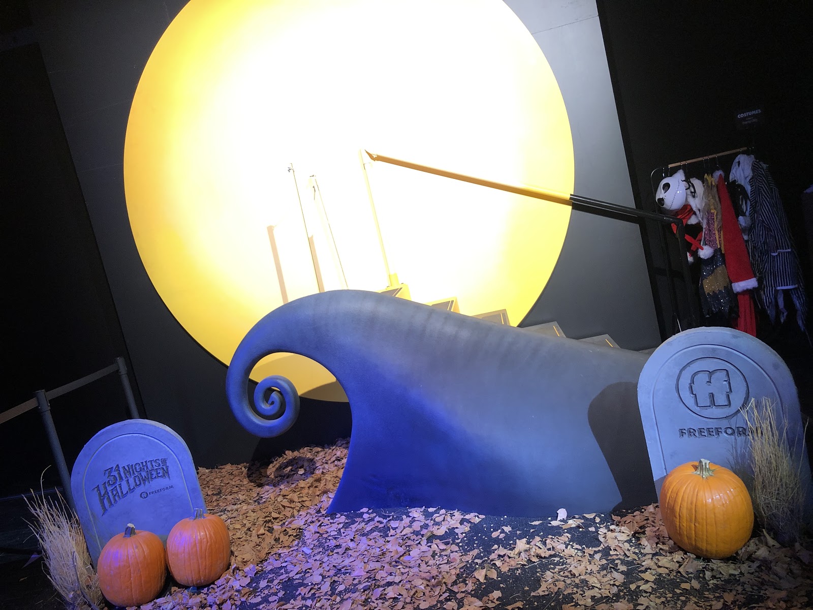 Once you’ve crossed the threshold through that foreboding Halloween tree, you’ll find yourself in an eerie graveyard with humorous tombstones (not unlike those you’d find at Disneyland’s The Haunted Mansion) informing us of the untimely demises of some beloved Disney personalities such as Mike Wazowski, Sulley, and even Buzz Lightyear and Woody from Toy Story. Then take your photo in front of the giant yellow moon from The Nightmare Before Christmas and continue to make your way through the house.