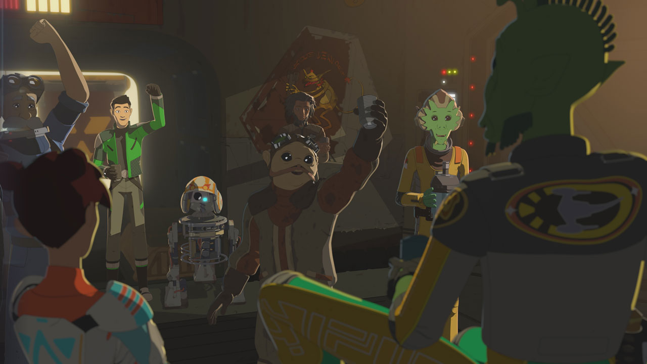 He’s enlisted former Rebel Alliance pilot Jarek Yeager (Scott Lawrence) to act as their new squadron leader and train the Aces for future combat. Surprisingly, he also wants to bring aboard the unlikely new member Kazuda Xiono (Christopher Sean) as the latest addition to the team. Hype Fazon (Donald Faison) is not happy about either of these decisions and “doesn’t remember signing up for the Resistance.” It doesn’t help that he’s also not Kaz’s biggest fan, and has branded the newcomer with the admittedly appropriate nickname “Kaz-tastrophe.”