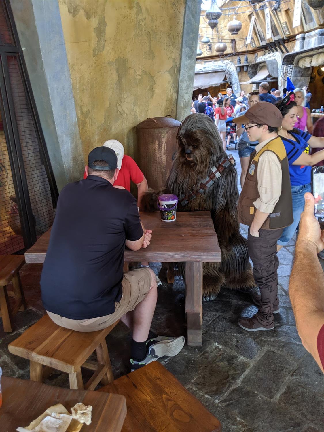 On my last trip to Disneyland, we only had a very short time in Star Wars Galaxy’s Edge. It was at night and most of our time was spent in Oga’s Cantina. So I feel like this was my first real visit to Galaxy’s Edge. I loved it! I like Star Wars, but I’m definitely not a fanboy. But I love being in an immersive environment. I think Disney really got this right. It’s huge, it’s multi-leveled, it has multiple paths - all things I love. The details are as great as advertised. And my favorite part is how it feels like a real location. Rather than meet and greets and shows, there are just characters going about their lives. I saw Chewbacca and Stormtroopers roaming around numerous times. Rey, Vi Moradi and others going about their business of inspecting and fixing their ships or looking for the Resistance. It just feels like we’re on Batuu among the locals. I completely love it. We also had lunch at Docking Bay 7 where I had some incredible Plant-Based meatballs. (Note: I did not forget about Smuggler’s Run. More on that in my next article).