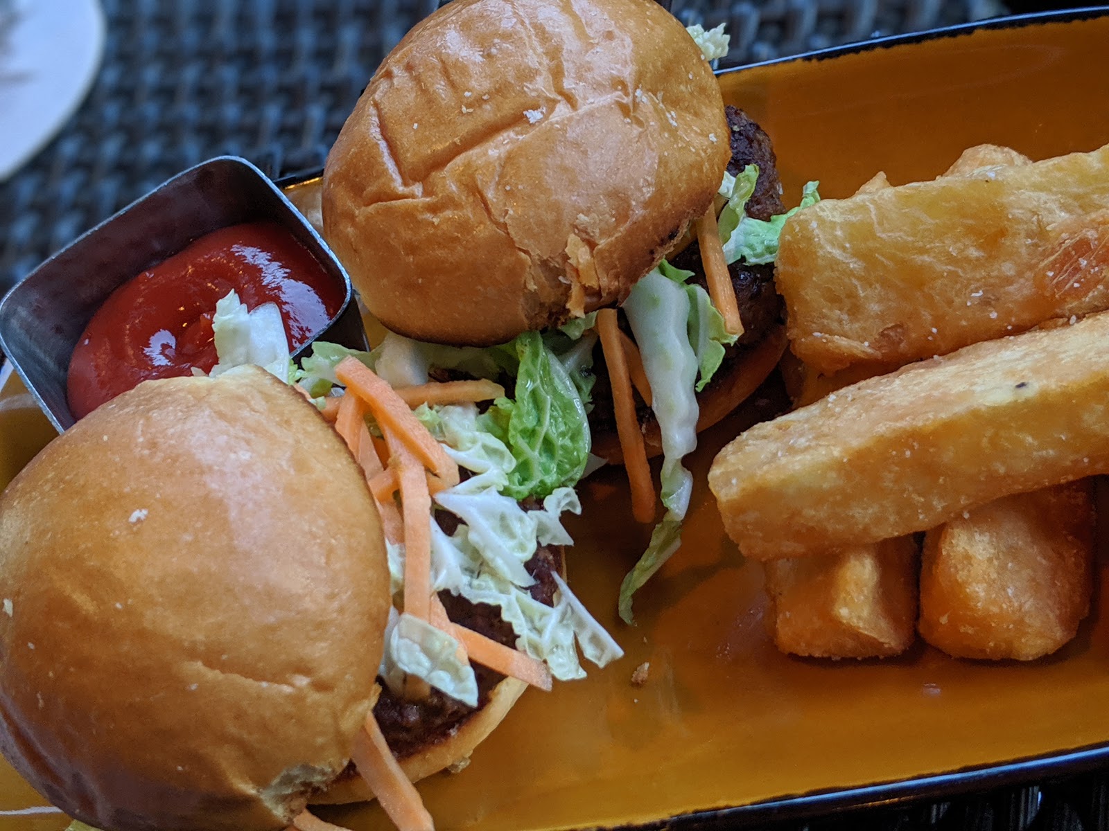 Going into this trip I knew that I’d have to do a few hours of work one afternoon. Turns it out was on our Animal Kingdom day so I trudged my laptop with me through a couple of rides, then needed to find somewhere to spend some time working. My wife suggested Nomad Lounge and I’m so glad she did. I grabbed a seat outside, put my laptop on the table and had a wonderfully relaxing work experience with a couple of plant-based sliders, churros like I’ve never had them before and a fun, non-alcoholic beverage. Despite being outside, it was quite comfortable (there is indoor seating as well), it wasn’t crowded so I didn’t feel like I was taking up room and the Disney Wi-Fi was more than adequate for my needs. When I move back to Florida, I think I’ve found my new office.