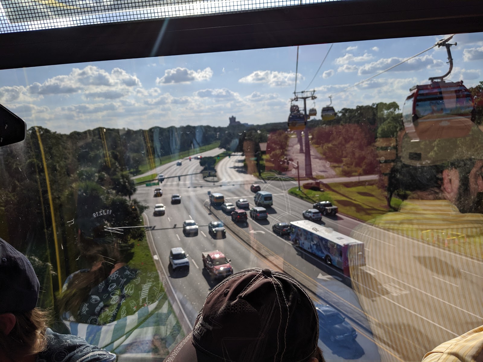 - It’s so peaceful. You know how when you leave a park on a bus, and you either end up standing or sitting while looking at someone’s torso. Everyone is exhausted and slightly irritated at the cattle-feel of the process? Plus the hum of people talking about their day, complaining about the heat or just yelling at their kids? You get none of that on the Skyliner. Once you board, you’re sitting, you’re comfortable (yes, even without air conditioning) and it’s quiet. In fact, it’s hard to describe the sense of peace you get on the Skyliner. It’s just so quiet and peaceful up there as you gently glide and sway through the sky. I’m getting wistful just writing about it. I want to go back!