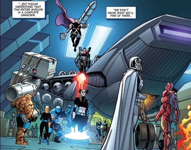 Upon finding Galactus’ corpse, the group learns that there is something inside and decides to actually enter the enormous body. Reed and Tony of course have their own motives for investigating, as they usually do, but the overall mission is to destroy the body so no one else can use the biology or technology of the eater of worlds for possibly evil purposes. As you can guess, things do not go according to plan.