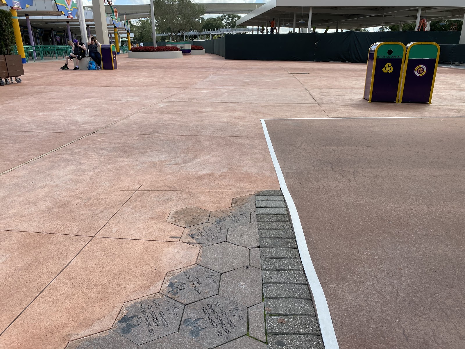 One of the largest projects resort-wide has been the updating of the bag check areas. Last week we saw half of the Epcot update open but the TTC is not only updating the bag check there — it’s also removing the Walk Around The World pavers at the same time.