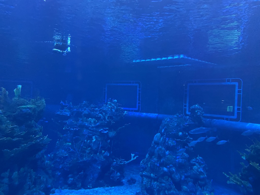 We love the giant Mickey head made of stones lining the bottom of the aquarium!