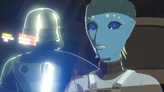 Having grown attached, Neeku and Nena try to convince each other to join their respective sides, but they’re both convinced they have already made the right choice. The First Order shows up just as Nena is escaping, and she reports to Commander Pyre (Liam McIntyre) before jumping away into hyperspace. Kaz and Neeku scramble to undo the sabotage in the station’s systems as a TIE fighter squadron attacks. Finally, Kaz must convince the pirates to disconnect their power entirely, apologizing for his earlier assumptions, so that the Colossus can achieve light speed.