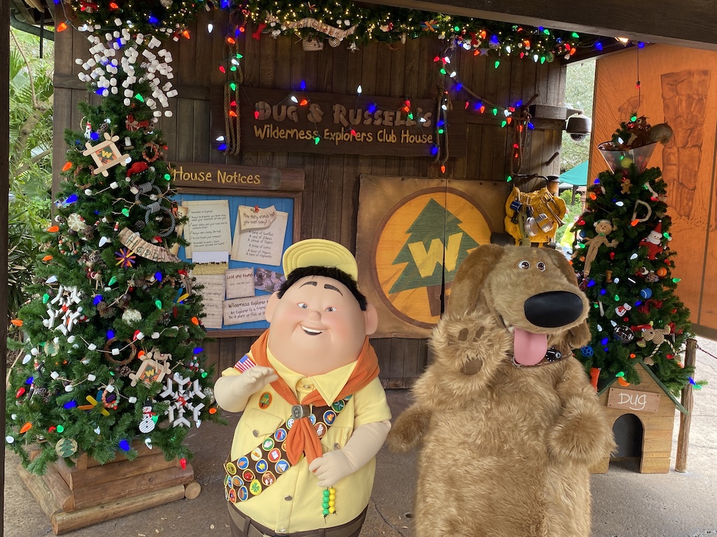 No matter the season, Wilderness Explorers love nature and learning! Russell and his furry friend, Dug have decorated their meet and greet spot with lights, garland, and Christmas trees.