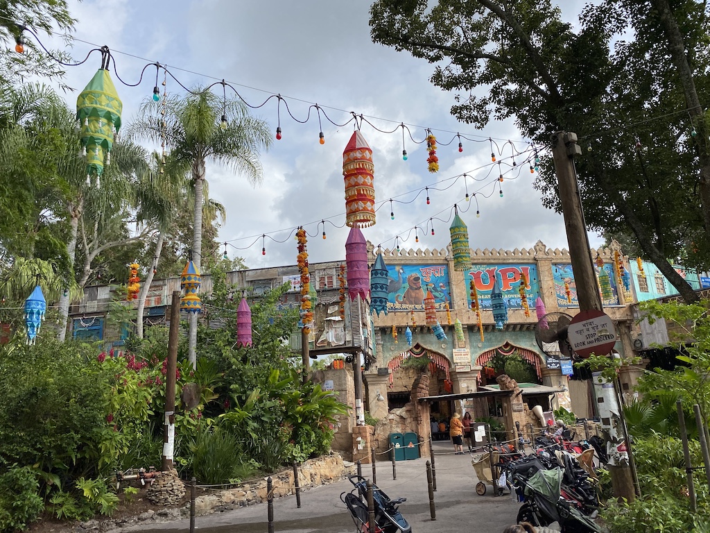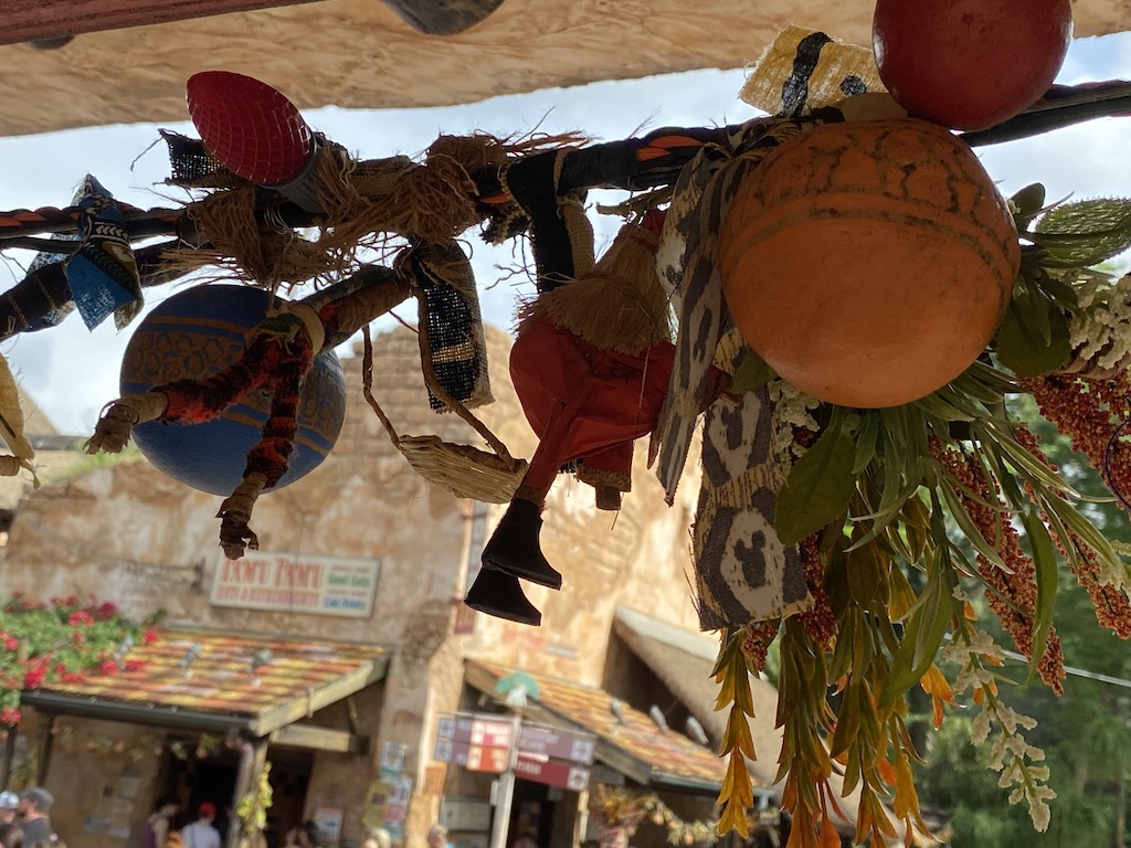 The village of Harambe features brilliant decorations in a variety of bright hues. Here they’ve blended western traditions with the colors and textiles of authentic African celebrations.