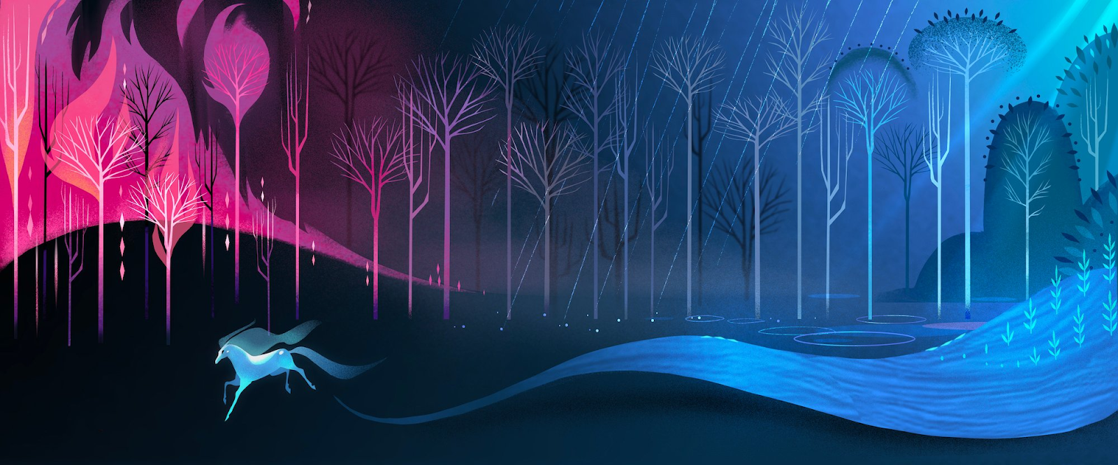 Speaking to how the short came to be, Gipson has explained, “The idea for ‘Myth: A Frozen Tale’ came from a personal place for me, and was inspired by my family’s tradition of telling bedtime stories.” He adds, “This led me to start thinking about what the world of Frozen and some of the film’s new elemental characters would look like in VR.”Just like the film that inspired it, “Myth” is gorgeously animated. With an array of sunset colors and breathtaking renderings of both elements and elementals, the short is truly an experience. A part of the credit for this lovely aesthetic can likely be attributed to production designer Brittney Lee, who’s also worked on shorts like “Paper Man” as well as some little films called Frozen and Frozen 2. I’ll also take this opportunity to note that the score by Joseph Trapanese matches the mood of the short perfectly and helps raise the emotion of the whole thing.