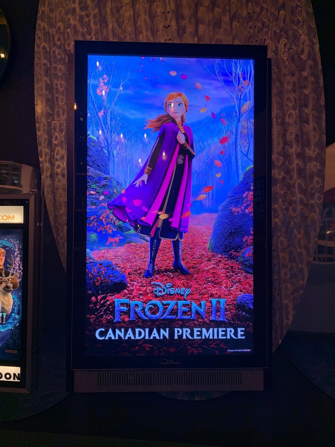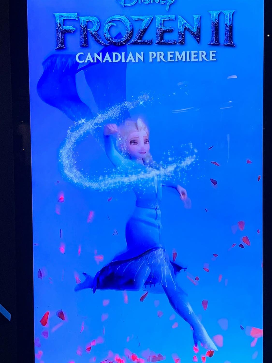 Prior to the movie starting, a Weather Channel representative came out to warm up the crowd (pun intended). It makes sense that when a film is titled Frozen 2 and has seen major events happen in Canada in the last two weeks, of course The Weather Channel would be a major sponsor of the event.
