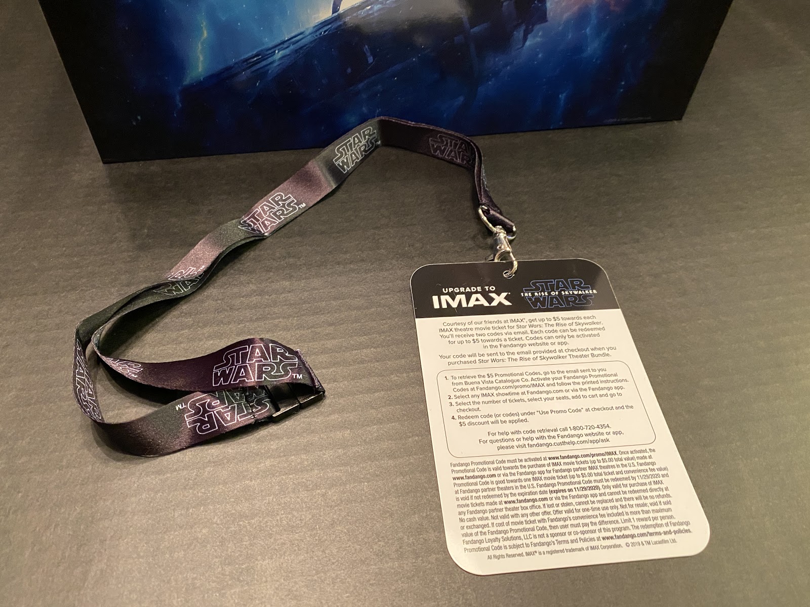 One of the perks of ordering the crate is the ability to save $5 on IMAX upgrade tickets. You can use the code on two tickets, meaning this could become $10 off your IMAX purchase. The lanyard itself is just for show and you’ll likely be the only attendee with one at your screening. The credential is removable and you can use it for other events, including as a lanyard at Star Wars Celebration.