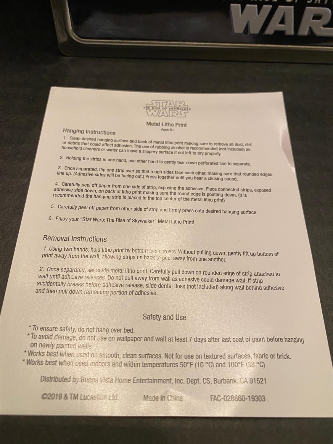 The movie poster is yours to keep as a metal lithograph with an embossed logo. It comes with 3M hanging strips and instructions on how to hang it.