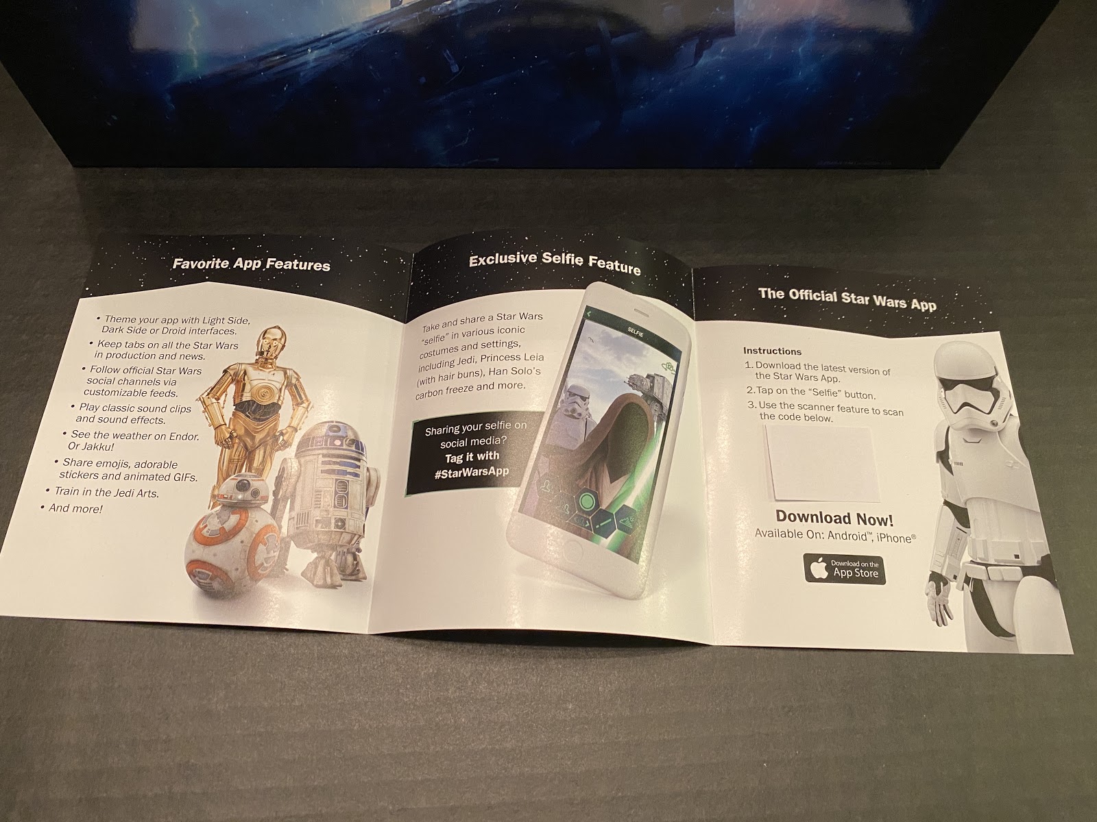 The included QR code allows you to access an exclusive selfie mode feature in the official Star Wars app.