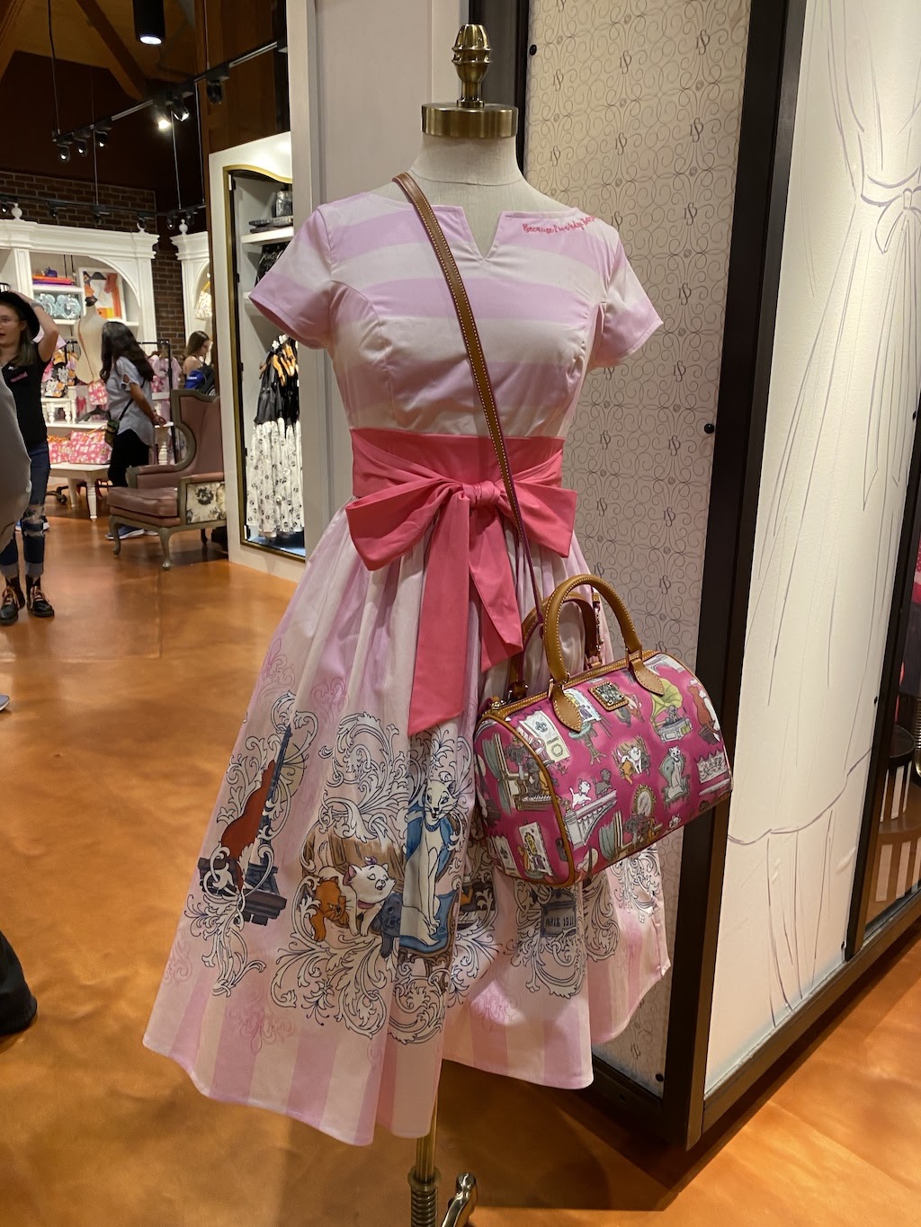 Before heading over to the excitement of World of Disney, we decided to stop by the Marketplace Co-op to see what was new. Turns out the Disney Dress shop had a cute style on display (and for sale) inspired by The Aristocats. C’est sympa! Not heading to Walt Disney World quite yet? These styles are available on shopDisney too!