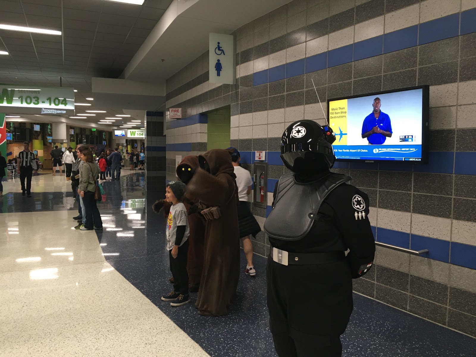 While walking the corridors of the arena, guests could encounter characters from the Star Wars films, including Darth Vader, Princess Leia, Jawas and more. There were even a couple of droids guests could pose for photos with, including R2-D2.