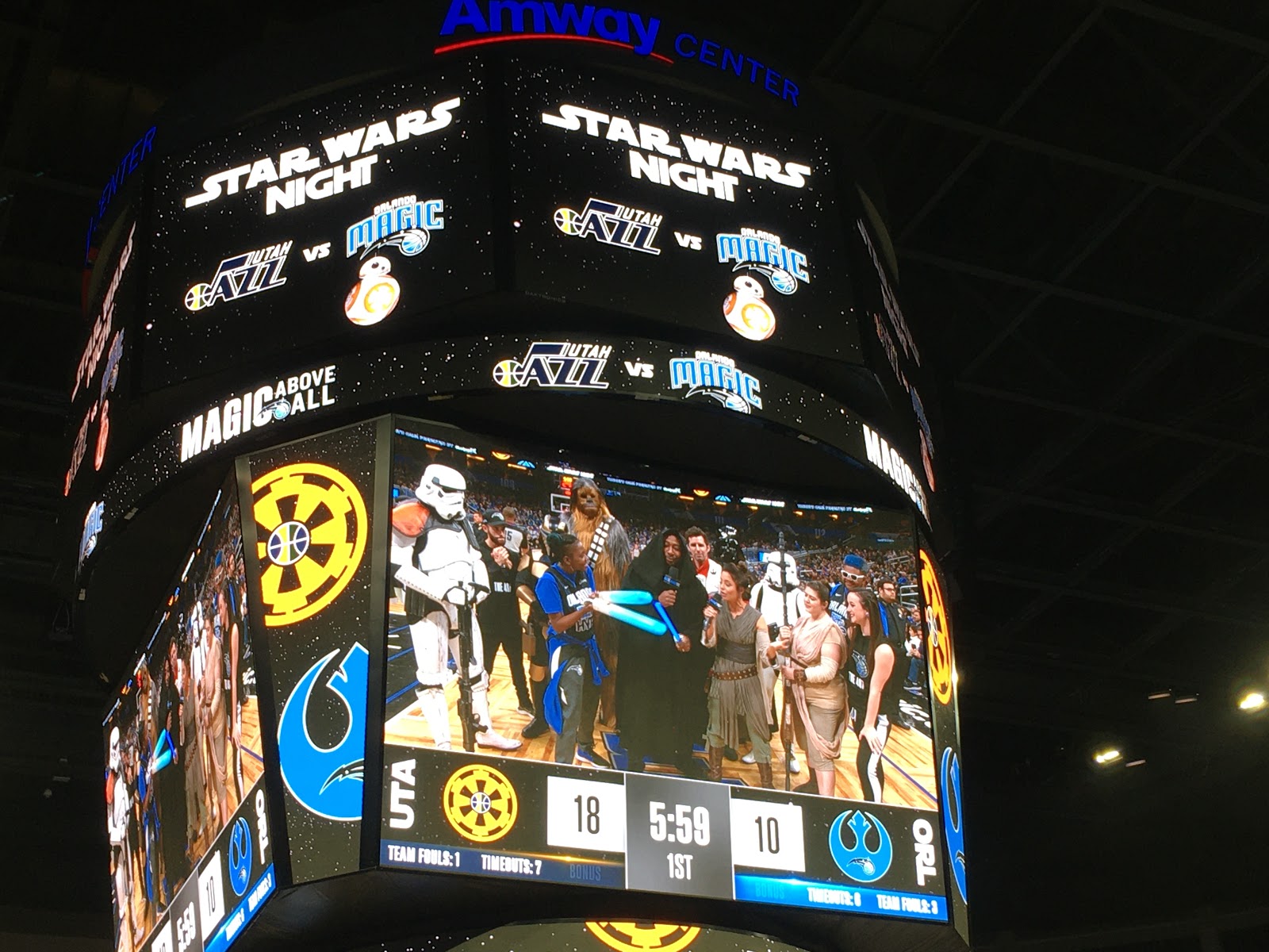 Unfortunately for the Magic and their fans (me included), the force was not with the Magic on this particular night as they lost the game to the Utah Jazz, but Star Wars Night was still a lot of fun for Star Wars and basketball fans alike.