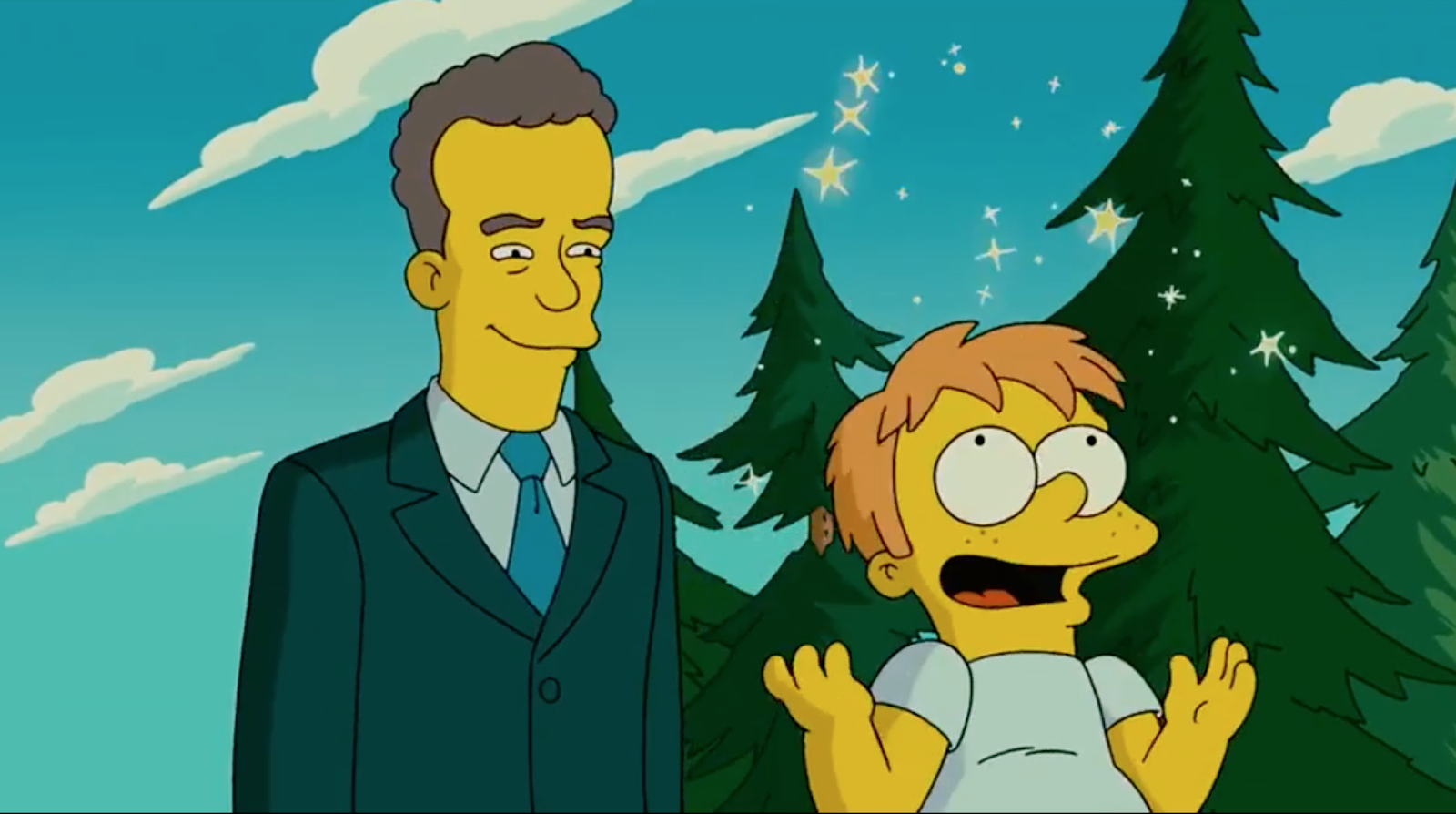 Tom Hanks played himself on a television in The Simpsons big screen adventure. See Tom Hanks go yellow on Disney+.