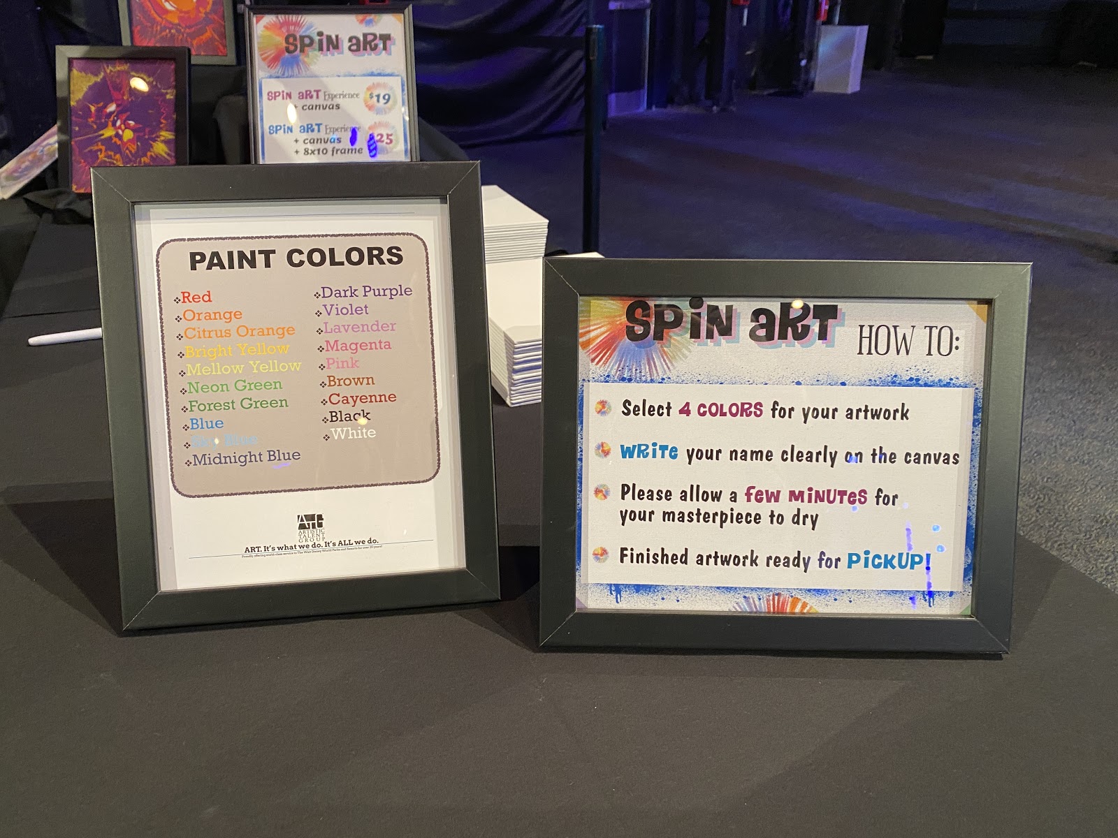 A perfect option for groups visiting Epcot International Festival of the Arts is Spin Art, where your experience can range from riding a stationary bike to spin a drum to create a work of art while their friends or family squeeze paint onto it. Those feeling less inclined to exercise can opt for an automated table top experience. You choose up to four colors and the experience promises that no two pieces will be the same. Prices range from $19 to $25 and the art will be completely dry within 15-minutes. Spin Art is located in World Showcase between Morocco and Japan.