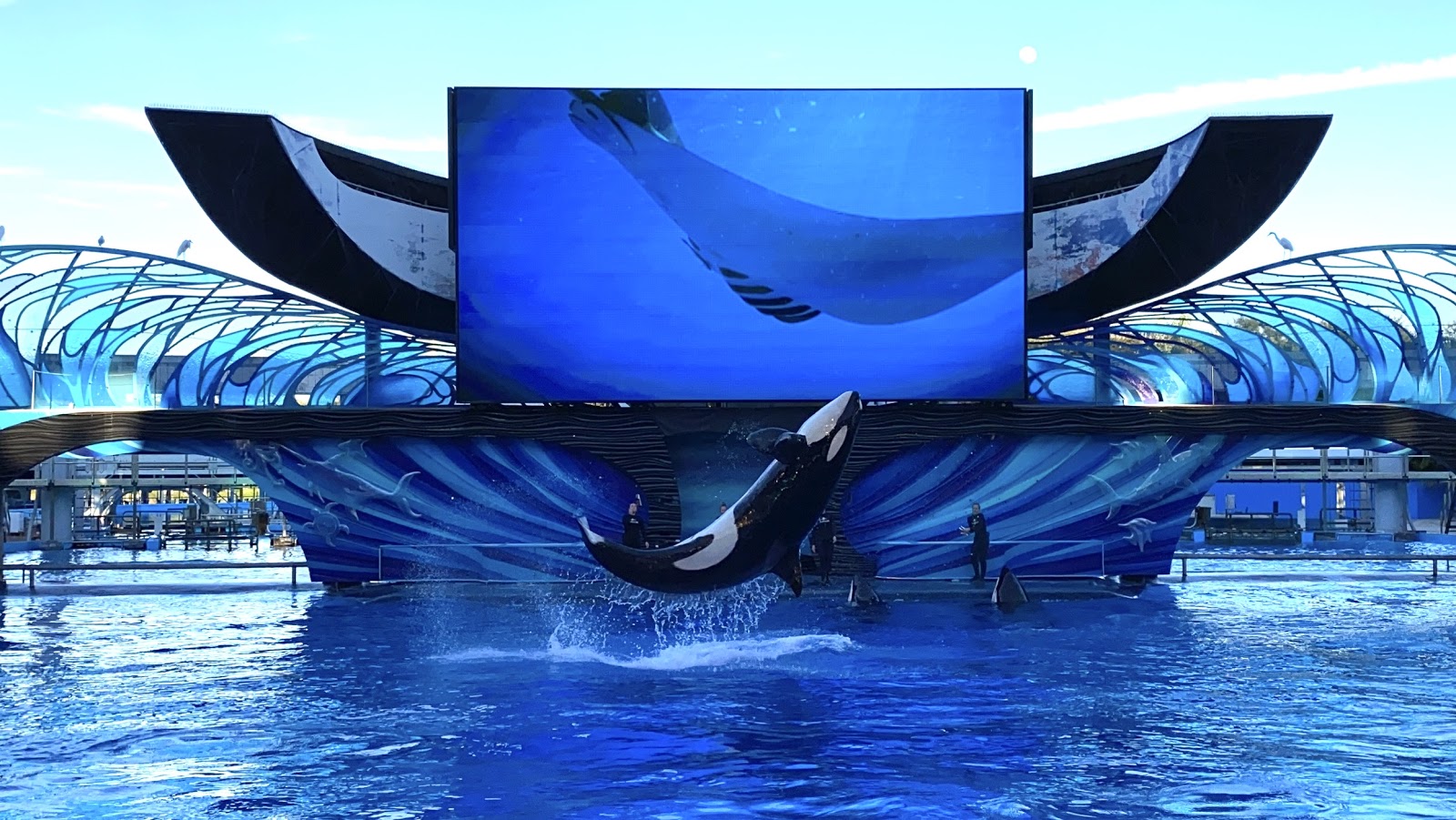Of course the show keeps the standard jumps, flips, and splashing but instead of just having it happen, the trainers talk about how these actions are not taught to the killer whales to entertain the crowds but are part of their natural behavior in the wild.