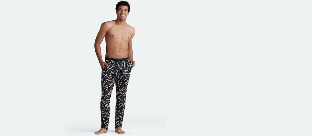 Star Wars loungewear isn’t just for kids. Enjoy a movie marathon in these ultra comfortable pants and onesies featuring galactic theming from MeUndies.