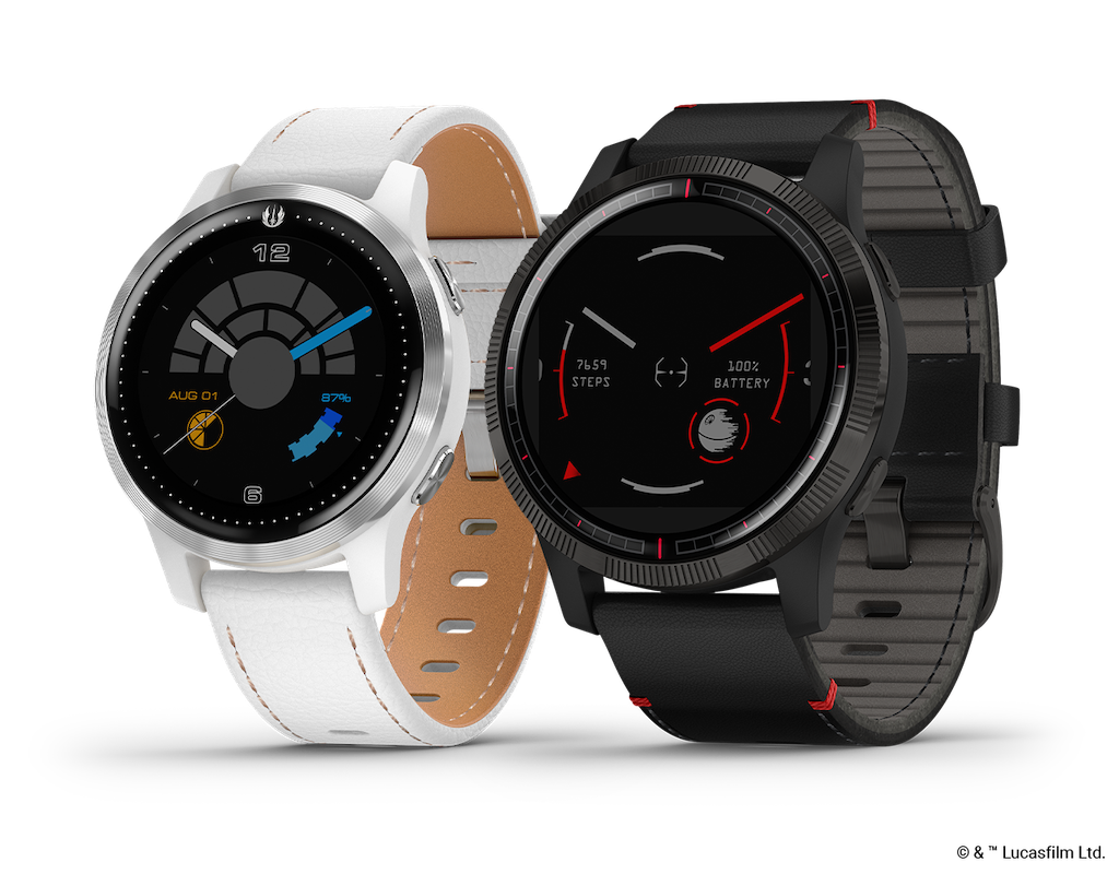Harness the power of the Force with Star Wars-themed watches from Garmin. These timepieces feature elements reminiscent of characters from the Original and Sequel Trilogies.