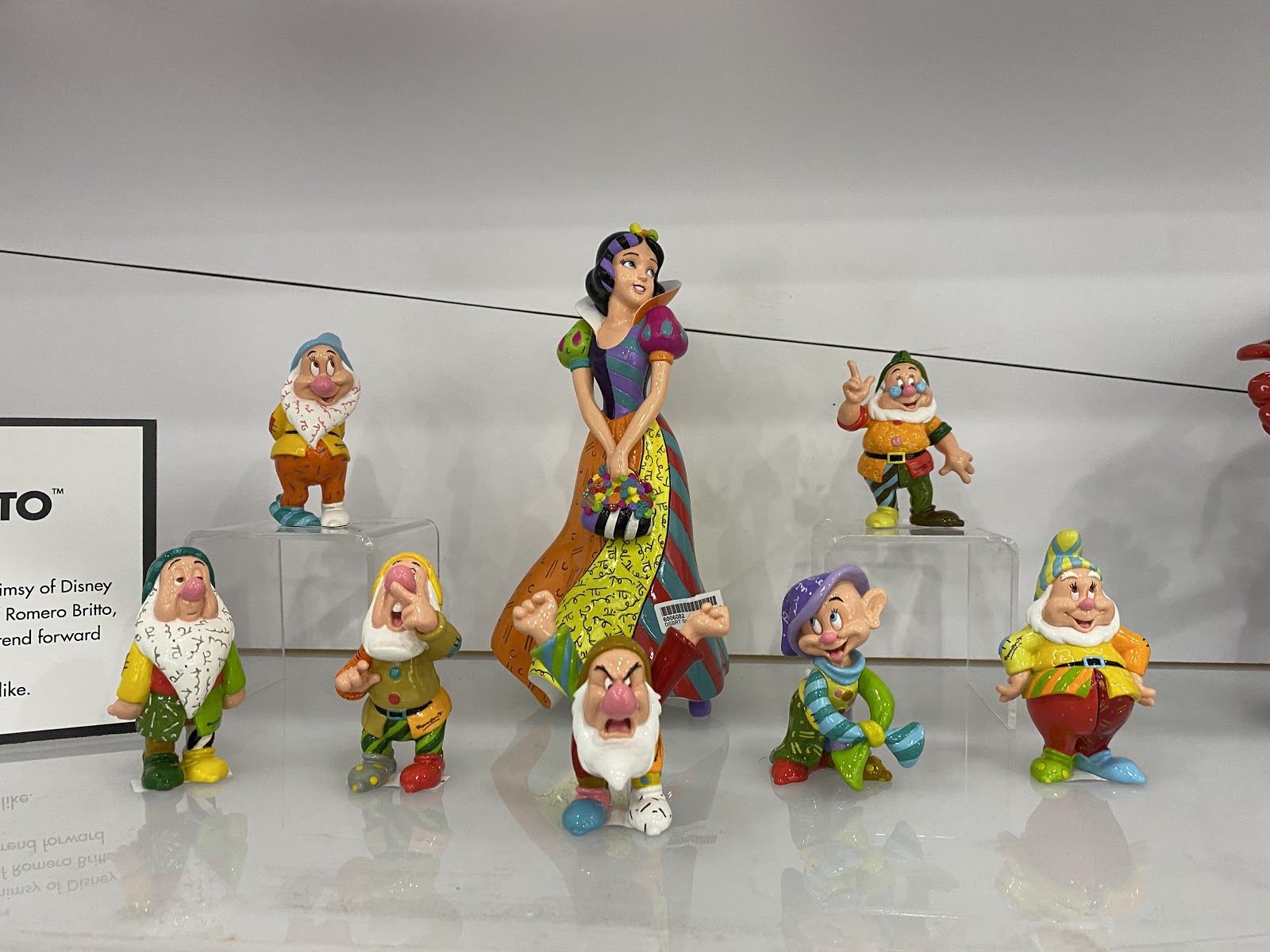 New from Britto is an Angel figure to go along with the already available Stitch. A dwarf collection is also coming, perfectly to scale with a Snow White figure that’s sold separately. In celebration of the 80th anniversary of Fantasia, a special Sorcerer Mickey is also coming in bright Britto colors. And who can resist the charm of the upcoming Dumbo figure with a glittery inner ear?