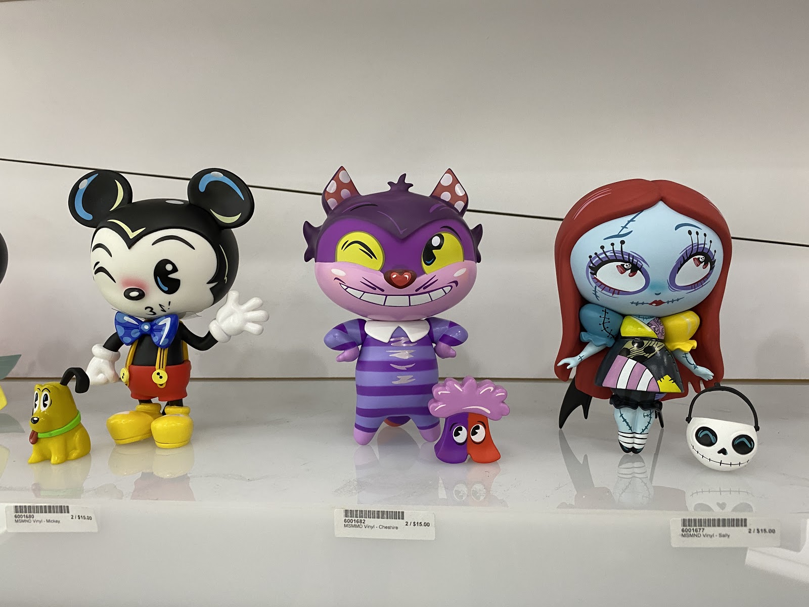 Ms. Mindy’s line of vinyl figures include Jessica Rabbit with a mini Roger, Alice, Jack Skellington, Sally, Cheshire Cat, Mickey Mouse, Minnie Mouse, Ariel, and Tinker Bell. New this year is a miniature line of Disney Princesses and Disney Villains that make these figures even easier to collect. Holiday variations of Jack and Sally are also coming later this year.
