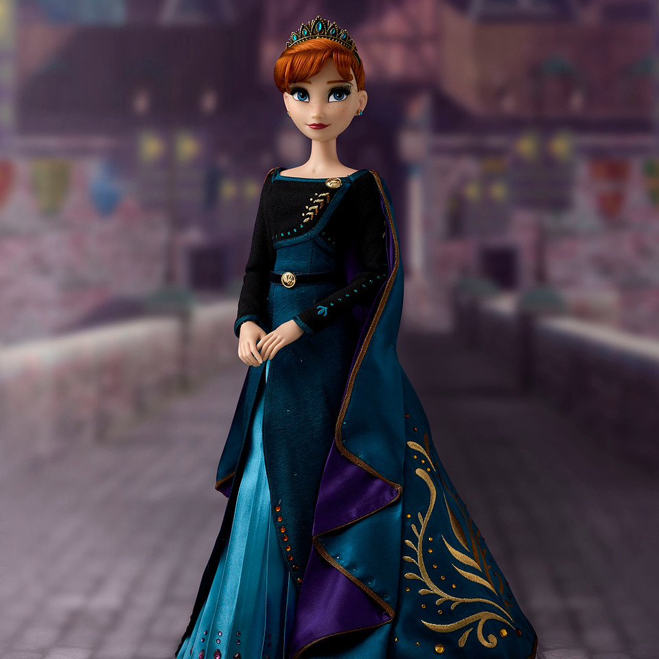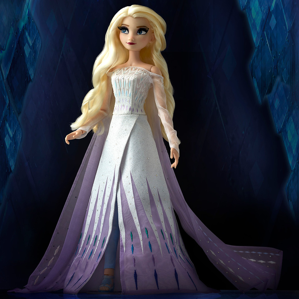 Each 17-inch doll features deluxe accents like Swarovski crystals, embroidered clothing, and rooted eyelashes. They also come in deluxe display boxes and a stand. Elsa is limited to 8,500 figures worldwide and Anna is limited to 8,000. Each doll will retail for $129.99. Purchase both dolls in stores or online to receive a free Olaf Disney Story key, exclusive to this offer.