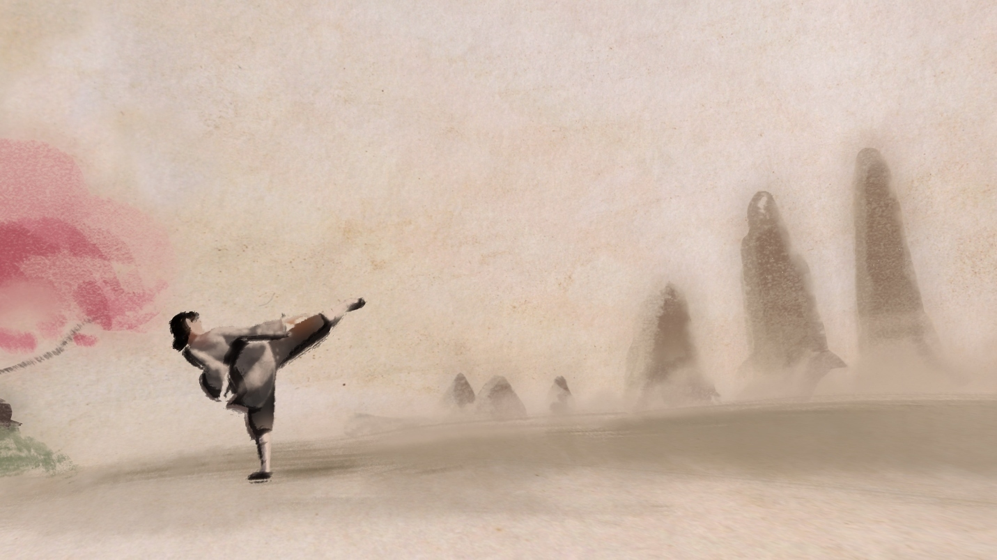 Jerry: When this idea came to mind, one of the first things I pulled up was the intro to Mulan and how the calligraphy goes in and comes up through and becomes the Great Wall. That was a huge moment for us and we brought all of these pieces together. We looked at animation from China, we looked at animation that’s tried to do this before. It was really piecemealing those together, but those inspiration pieces helped us as like a ‘Oh, that’s cool.’ What was really nice here is that we were like let’s put boots on the ground and see how we can iterate towards wherever that may be. There wasn’t a specific story moment that allowed for that Mulan type of feeling to it, but it was definitely an inspiration point.